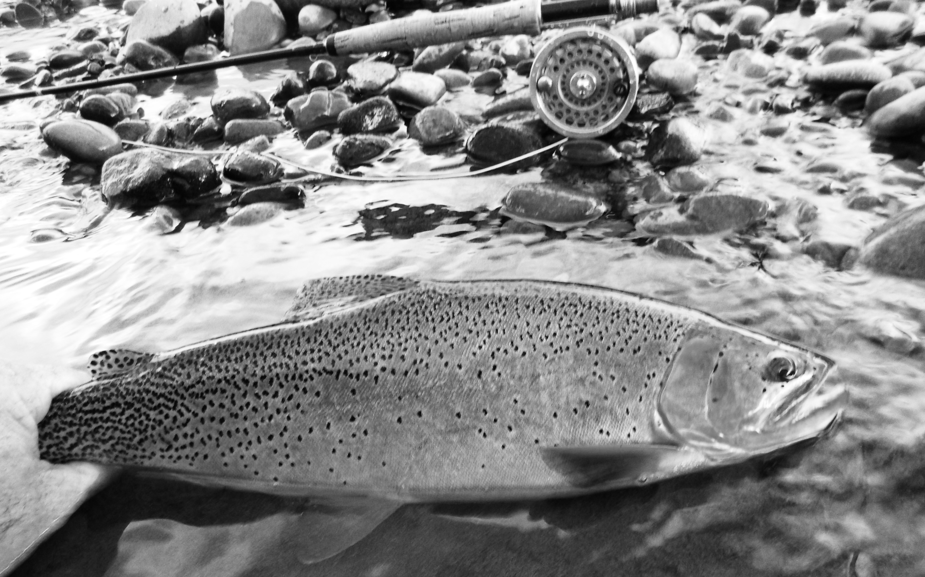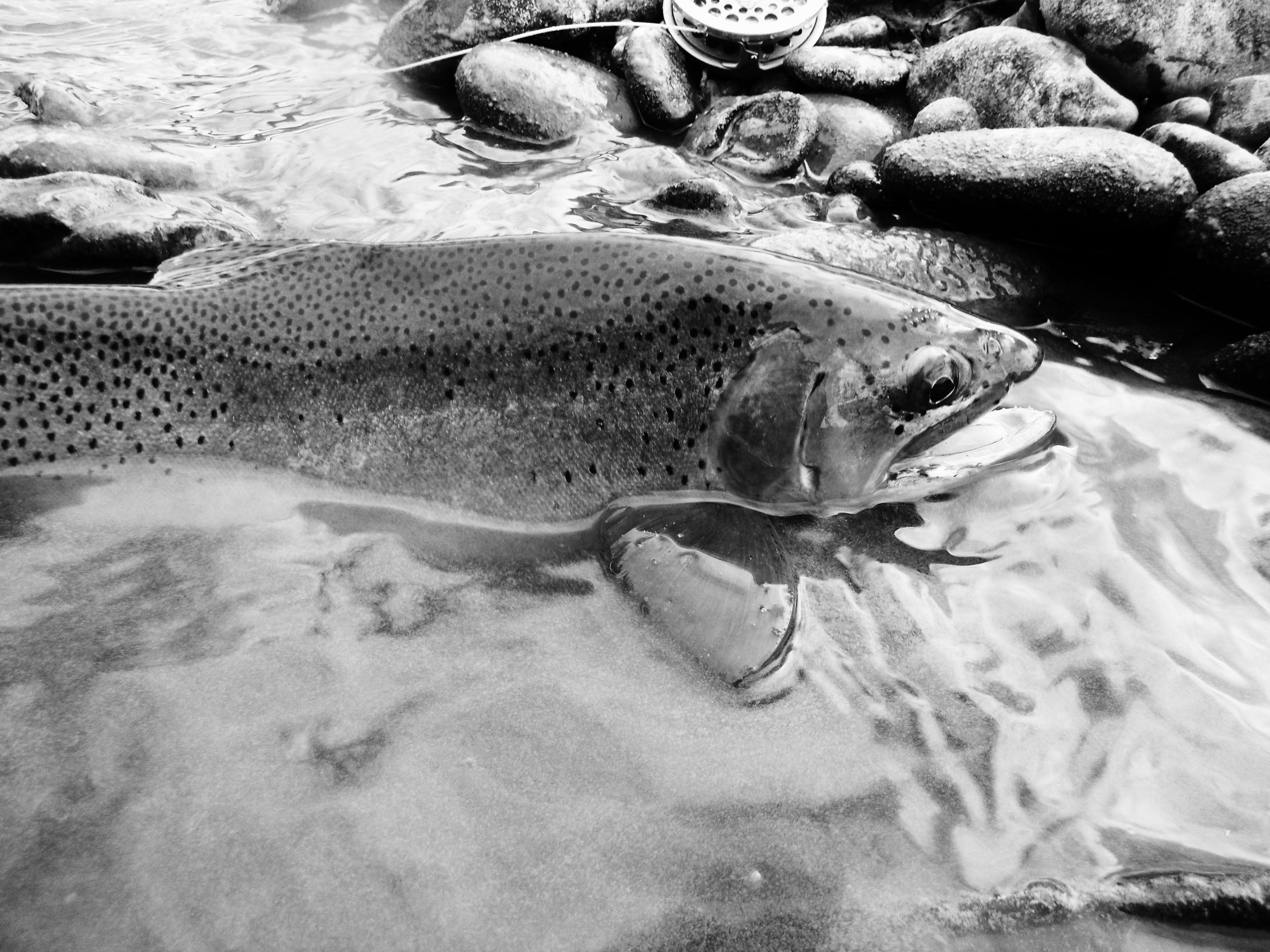 I crossed into BC this weekend as there were 100km an hour wind warnings in my region of Alberta. I fished the Elk river. With the predicted relative calm and overcast sky I was hoping for a Blue Winged Olive hatch. There was a very brief one late afternoon and I eventually found some rising cutthroat trout. An early trout was caught on a cricket pattern and afternoon rising fish on a size 20 Olive pattern: natural color deer hair wing tied forward, a turn or two of medium dun hackle clipped on the bottom, grey thorax dubbed and grey body, amber trailing shuck on a Klinkhammer style hook that allows the body to dangle. Sounds kind of complicated but I’m sure any fly tied the right size would have worked. Here are a few weekend pictures of the east slope, the west slope and some BC cutthroat.