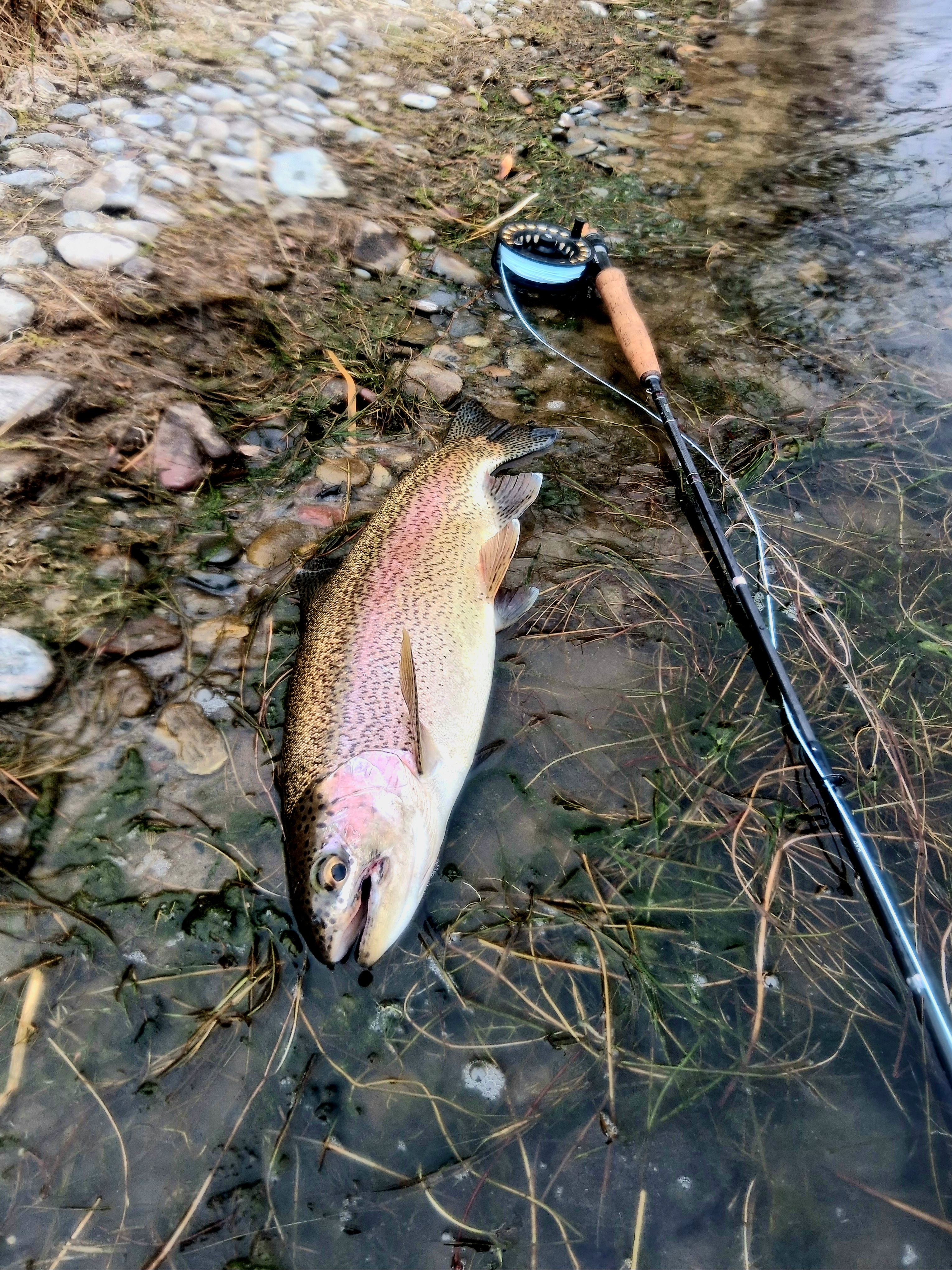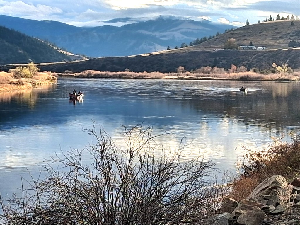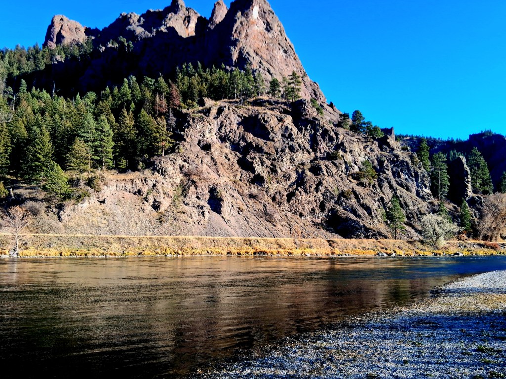 The riverside campground where I stayed in mid-canyon was empty. Harper was left off leash as there was no one around to bother. She chased squirrels and some deer, and nosed the fire pits. Fortunately no skunks showed up when it got dark. Most mornings it was 32f or slightly above. In the afternoon it was 40s or low 50s f. There were a few anglers around and some floaters. The fly shops were open but quiet. A great time to look at angling stuff. Local restaurants were closed.