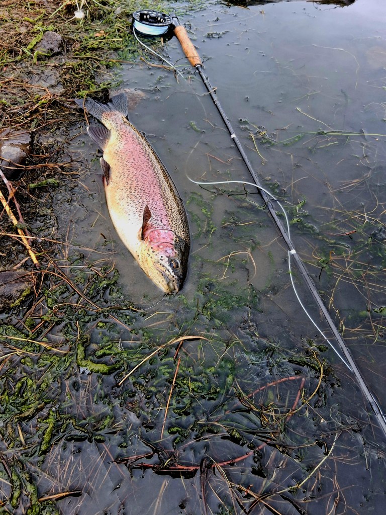 • Back home. 2 days fishing. No midge activity in mornings to lengthen day. Saw fish tailing in shallows, often ft or less of water, early in day. Looked like sow bugs everywhere in weeds and possibly fish on them. Bought some unweighted ones and small unweighted leeches and sightcasted to them. Put them in zone. Let them hang then some slight movement. No results. Tried unweighted PTs…same.
