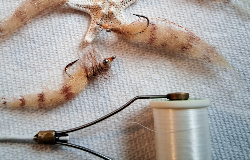 When I had to deal with high wind on the flats (most days) I found patterns tied with silly legs often got fouled on the hook. On those days I clipped the legs off. Shrimp eyes that I made with melted monofilament and that protruded slightly from the shrimp body and hook bend, often picked up shoal grass filaments/ blades dislodged from the shallows by fierce wind even though most flies that I tied had preventative weed guards. So I nipped the eyes off too. A fly with a weed strand (s) hitch-hiking on it was always rejected.
