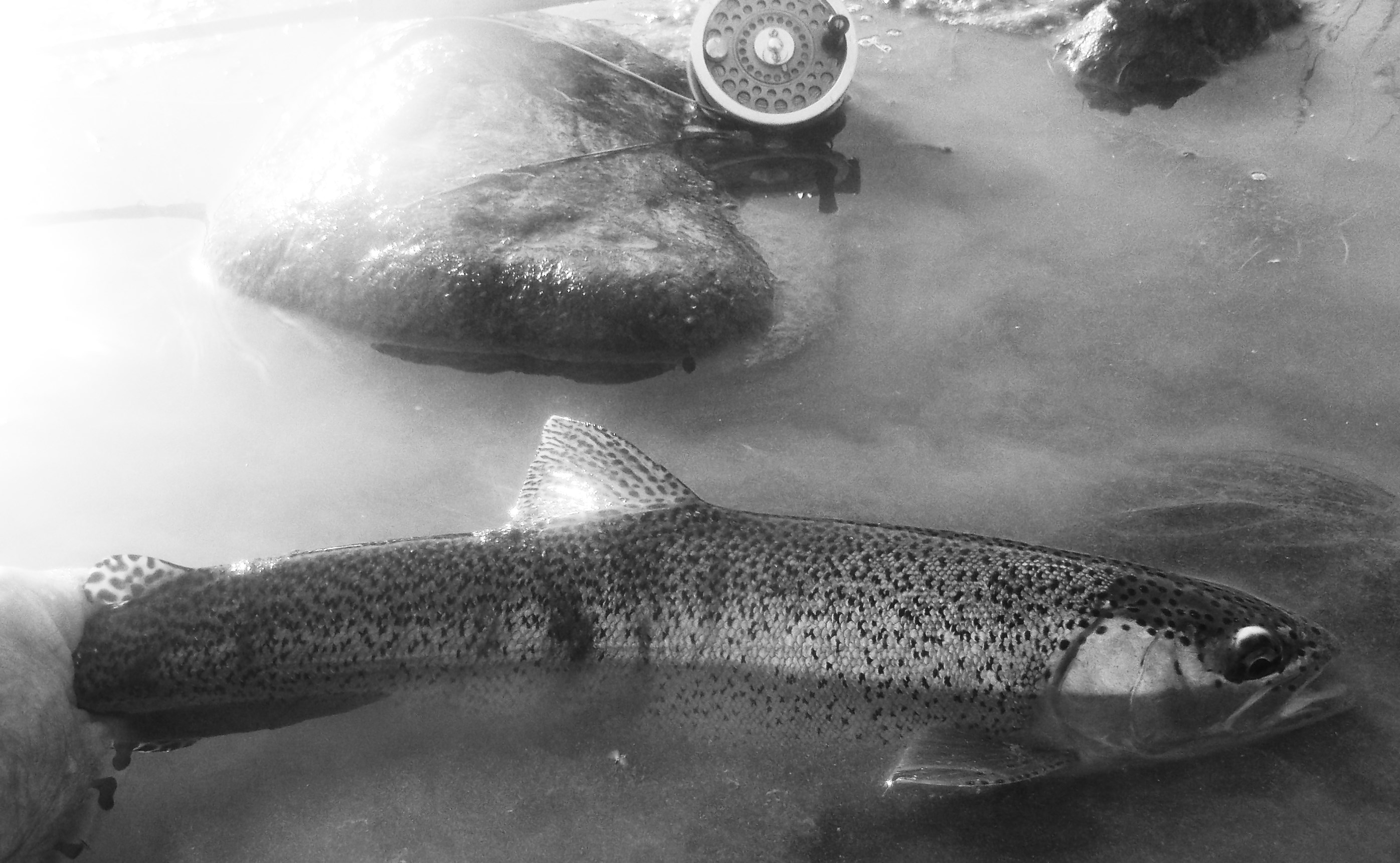 I had one cloud covered rainy day and a strong hatch of tiny olives, and a few larger ones, occurred. The trout were mainly on emergers. I fished a few different dangling fly patterns with some success. The key word is, “some”. That was the easiest day.