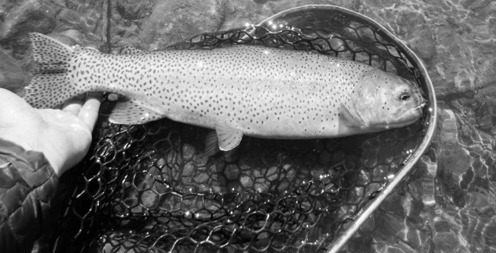 I was on the Crowsnest river this past weekend. Sunday was a rare nice day and warm. It felt like Spring! Some Midges were out in the afternoon, however, no fish were up on the section I was on. I even saw a couple of Blue Winged Olives at about 4pm. Just a few but promising. With no rises I started focusing on the river bottom instead of the surface. It’s a completely different type of looking. Through the river glare I eventually spotted a few dark shadows creeping along the bottom mid-pool. They would travel upstream six feet or so then drop back a bit, and then repeating the cycle. They were active. They were feeding. I managed one on a size 18 PT nymph with a cassette tape wing case and a small black beadhead. A dull fly; no shine to it. I landed a classic Crowsnest river rainbow. No hook marks. It was nice to be out sitting riverside in the sun. Nice to sight-fishing again. A new season.