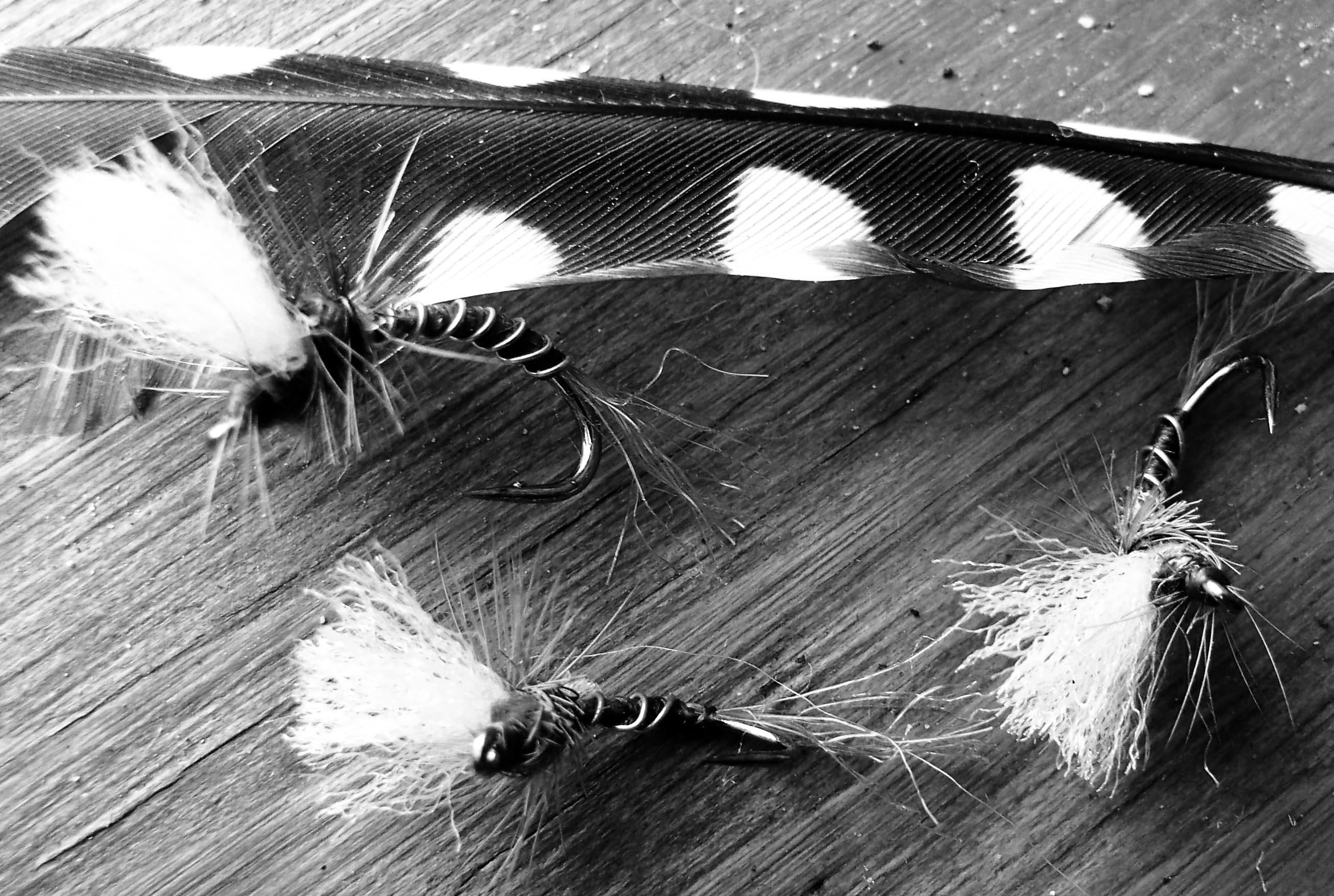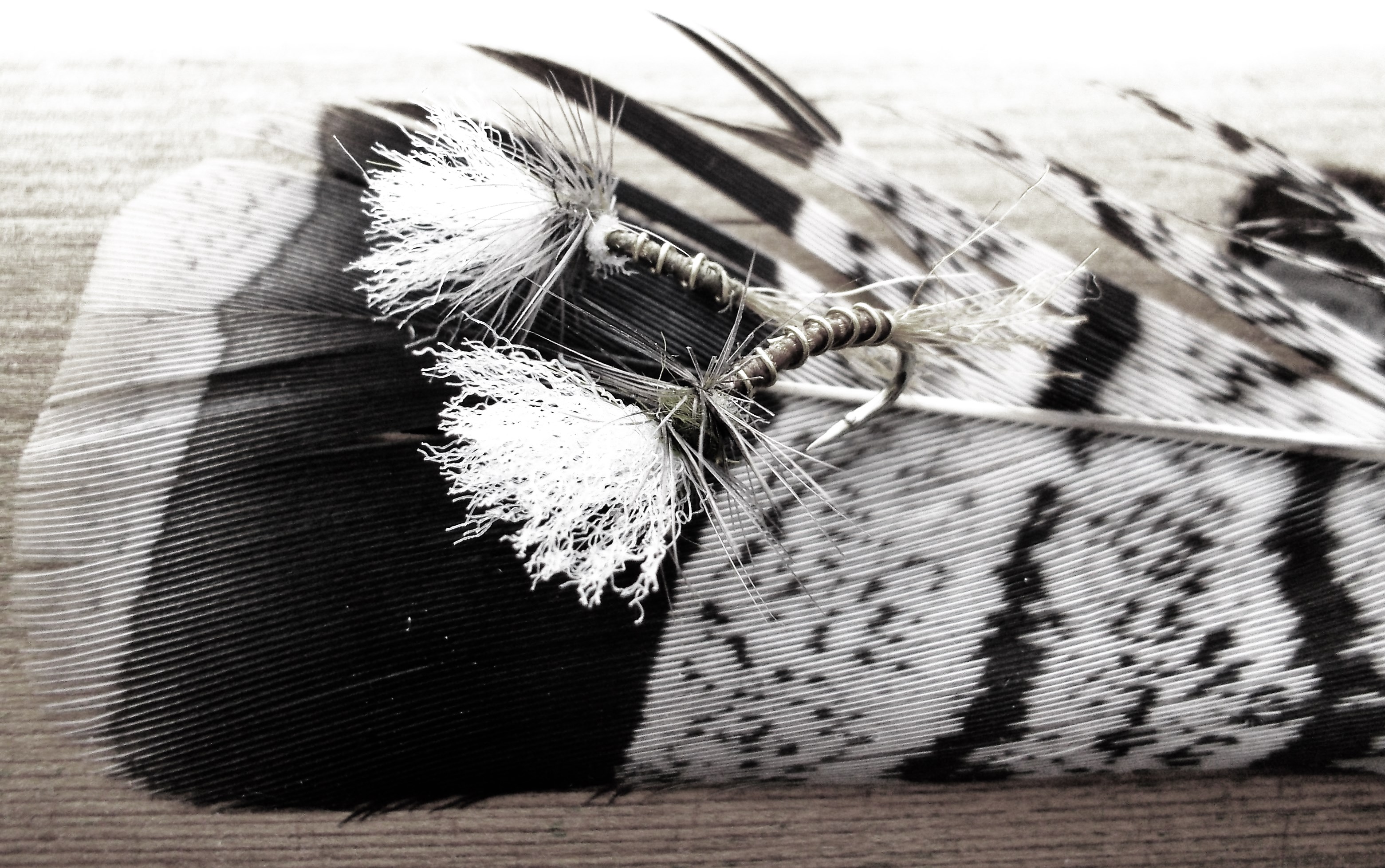 Most of the streams I fish flow through arid sun baked terrain. The edges however are often lined with tall grass growth. They shoot skyward with the summer warmth, stream moisture and nutrients. These edges are places of life: waterfowl, insects, eggs, feathers, even the odd golden retriever…
