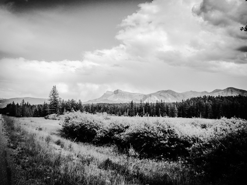 Late June in SW Alberta. A Cutthroat stream. Clear water. Cold water. The weather was suppose to be mainly sunny today but for the most part it was a mixed sky. Mainly cloudy with some sunny breaks. It made wet wading chilly. My feet quickly became numb. River temperature was 49f in the shallows. It felt much colder in the deeper water when I crossed sections of the river when making my way upstream. Sunny breaks heated the riverside sand and fine dry gravel beds. I knelt down in these soft spots absorbing the heat radiating from the ground and watched a number of pools for rising trout. I only saw two slight surface disturbances all afternoon. Fine Cutthroat they were.
