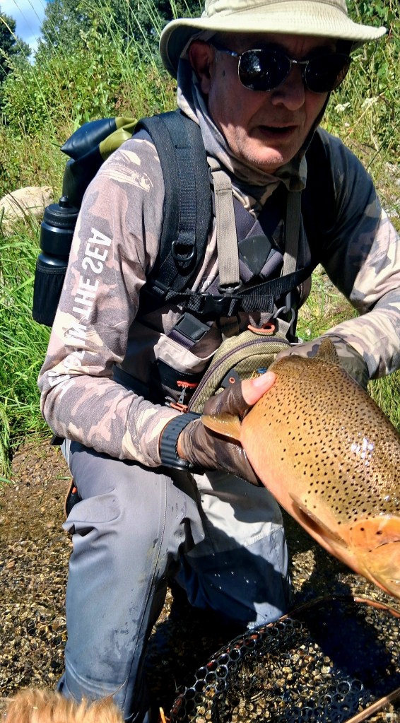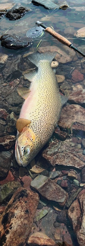 Road trip. Fishing, not Baseball. Last one for the trout season. It’s been sunny and blowing for weeks along the eastern slopes. The two conditions often go together in Autumn. The upcoming weather prediction was for 2 or 3 days of calm and overcast skies. A perfect set-up for a late season Blue Winged Olive (BWO) hatch. So I decided to take advantage of the incoming low front and drove due south in full sun and high wind, and woke up next morning under a heavy sky and best of all calm.