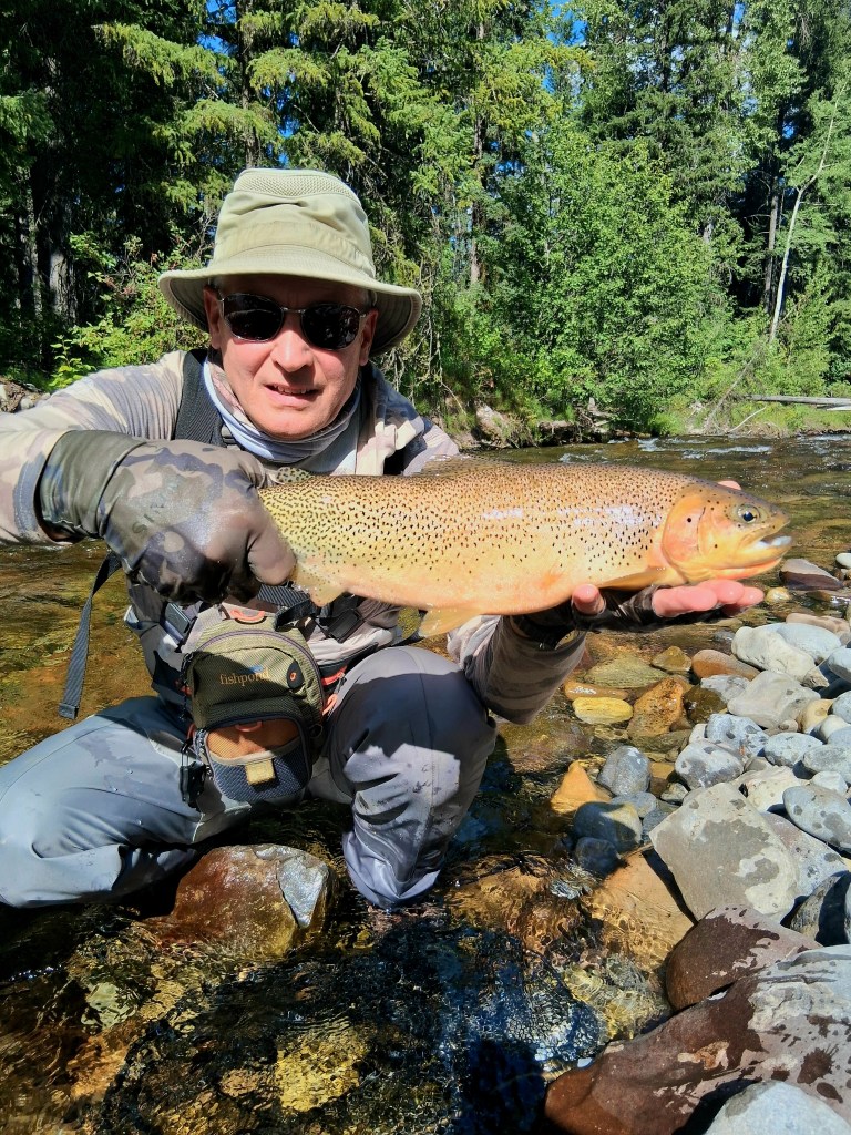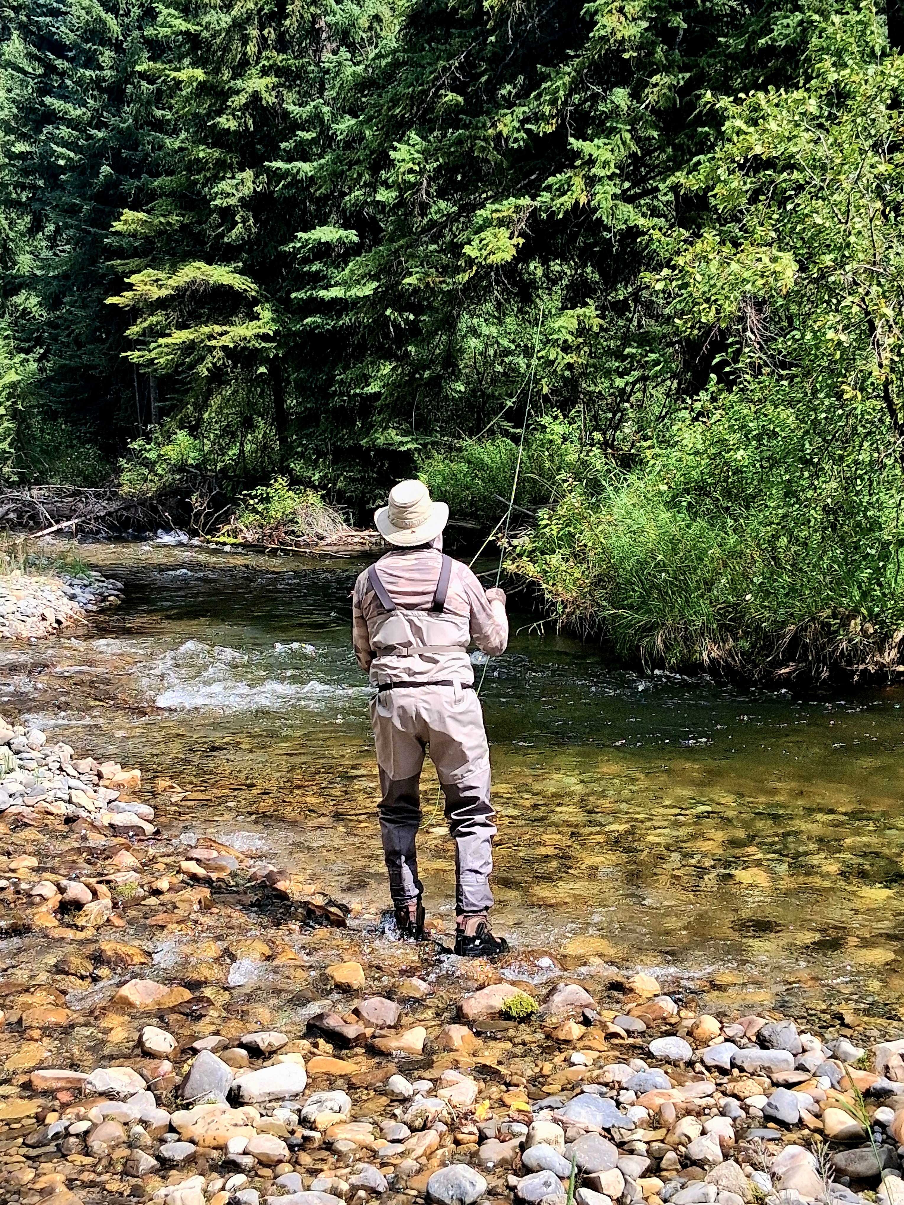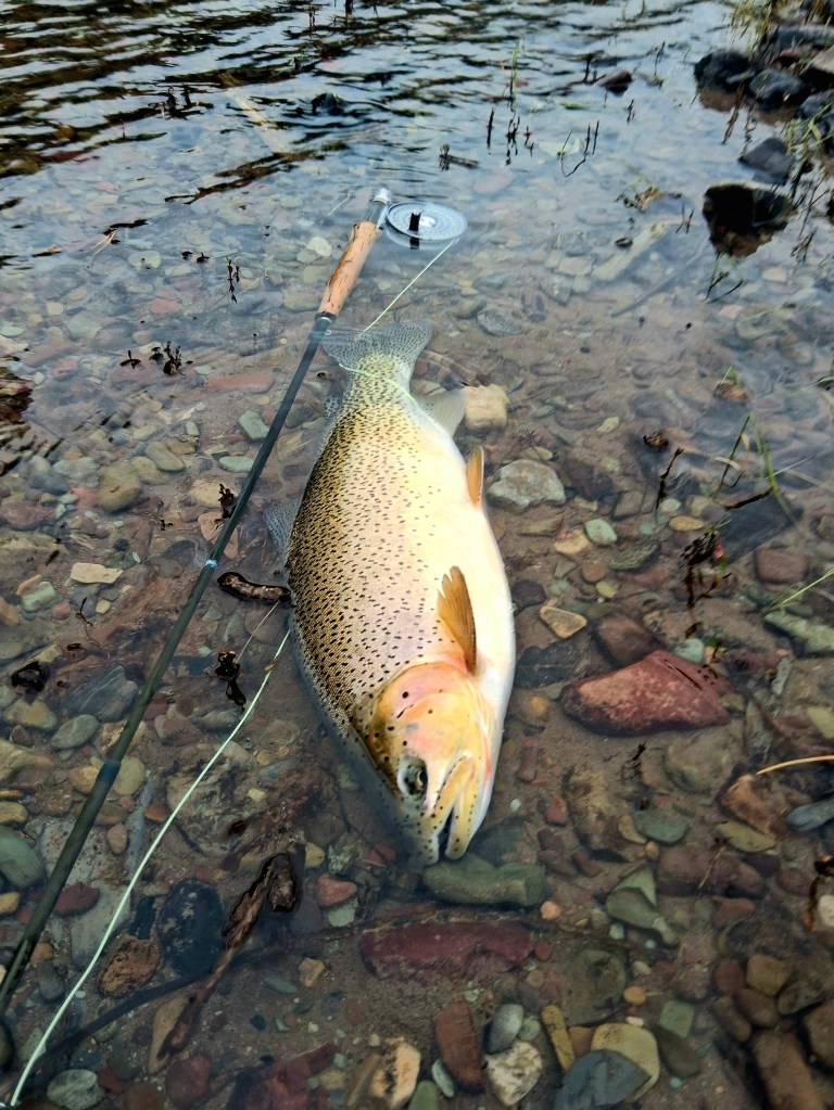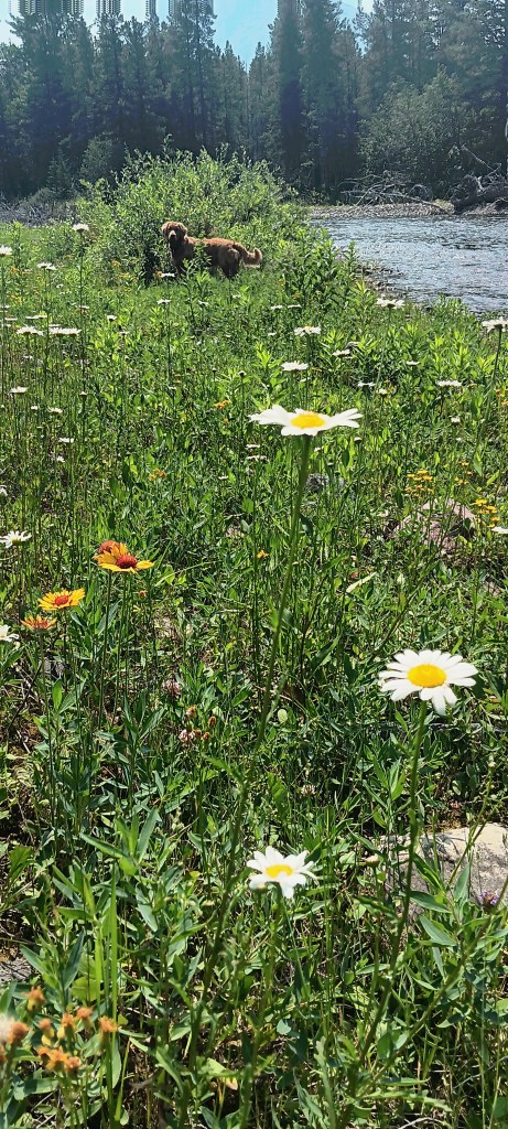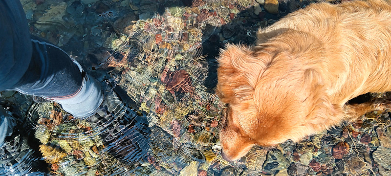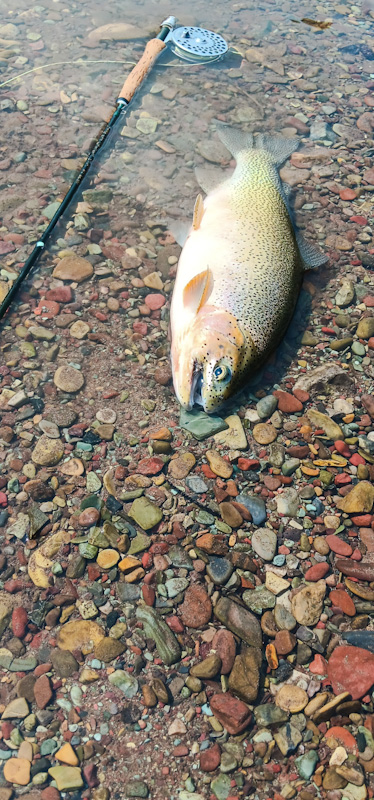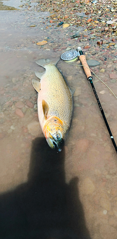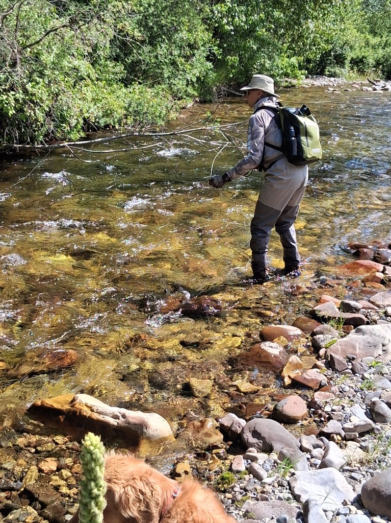 The riverside campground where I stayed in mid-canyon was empty. Harper was left off leash as there was no one around to bother. She chased squirrels and some deer, and nosed the fire pits. Fortunately no skunks showed up when it got dark. Most mornings it was 32f or slightly above. In the afternoon it was 40s or low 50s f. There were a few anglers around and some floaters. The fly shops were open but quiet. A great time to look at angling stuff. Local restaurants were closed.