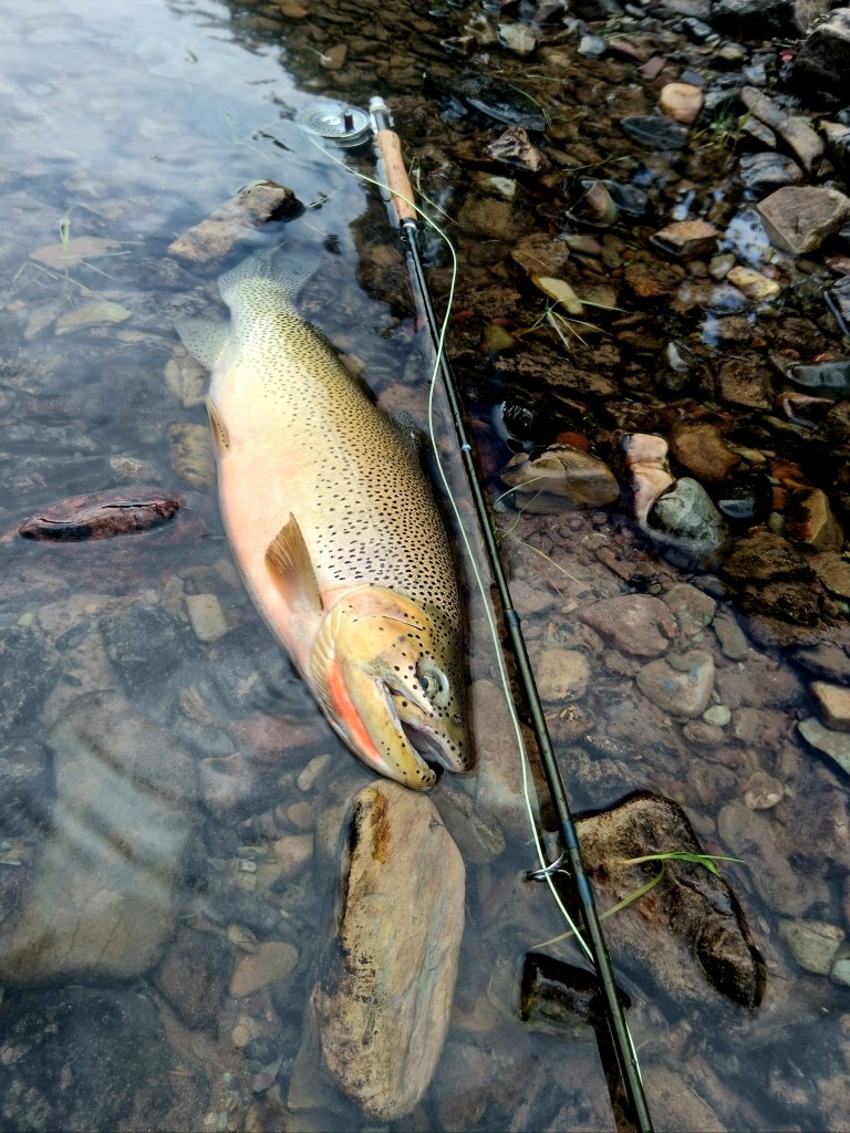 The night is long at this time of year and daylight short, and dry fly opportunities brief. One or two hours in the afternoon, maybe slightly more, depending on the intensity of the hatch. My first day I experienced a weak hatch. The second day it drizzled a bit, was colder and the sky ominous looking. The hatch was strong. The river section I was on came alive, and I connected with size 18 and 20 parachute BWO dries. Rising trout on November 4th. It was a good day. So good I flipped my fly rod in the air.