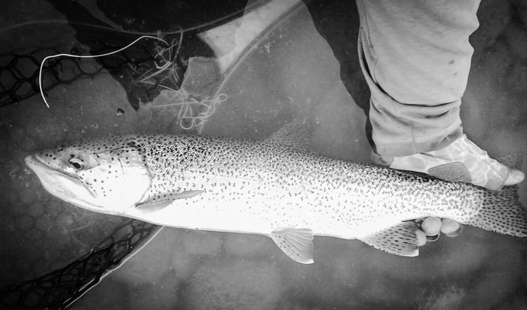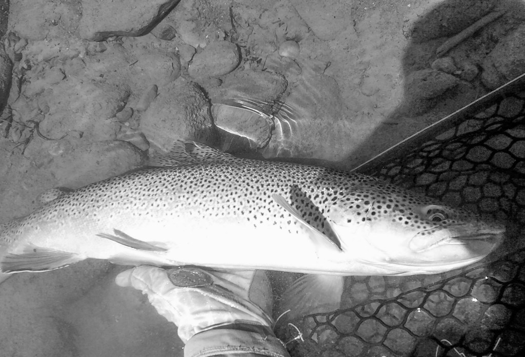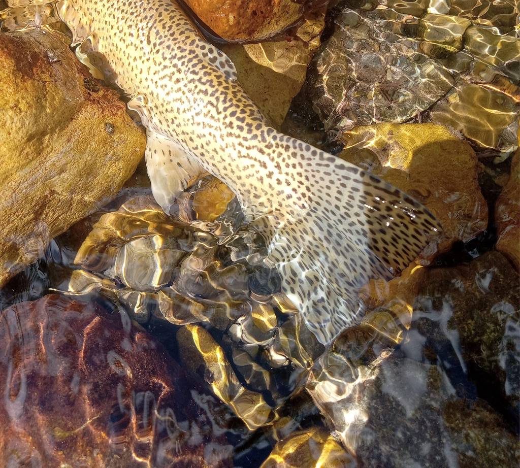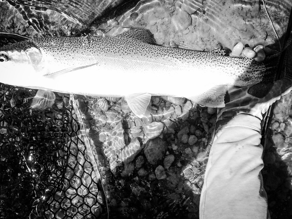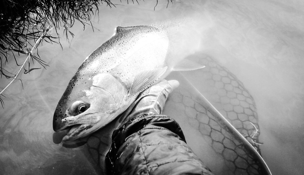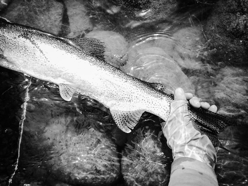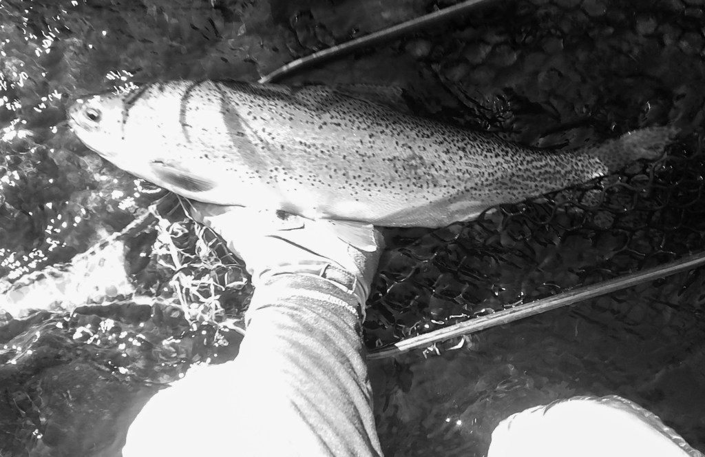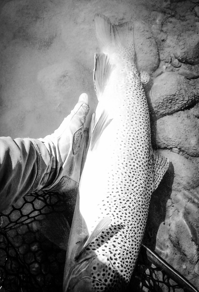 My fly choice has to be convincing. If it rejects it, it will glide back to the deep. That might be it for the day. Gone! If it decides to eat, it is often a slow motion take so I’ll have to be equally slow with the hook set. I match “slow with slow”. A hook-up in an a large pool often means I’ll probably hear the tick, tick, tick of my backing knot as it passes through the rod guides.