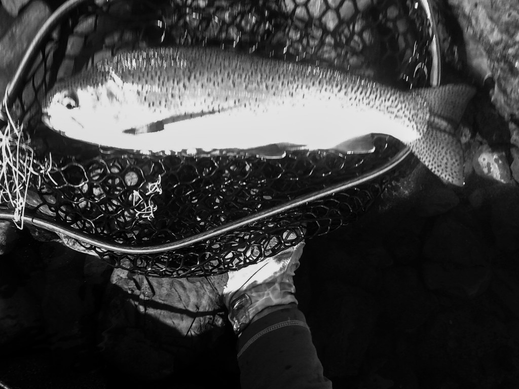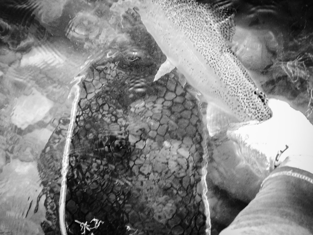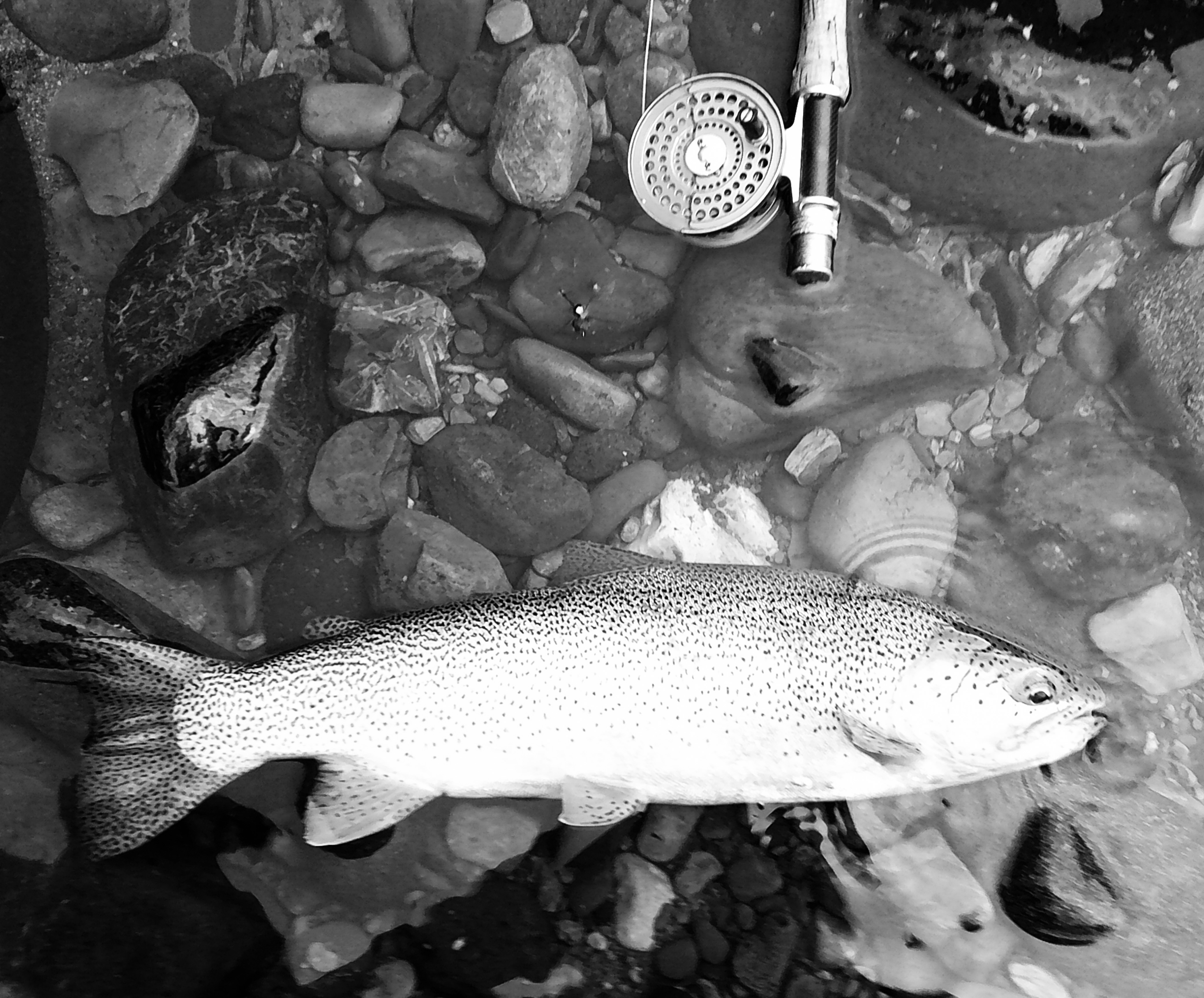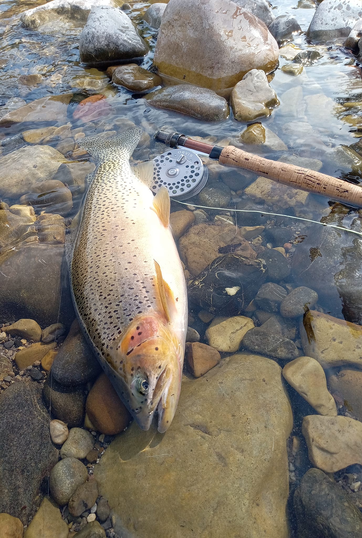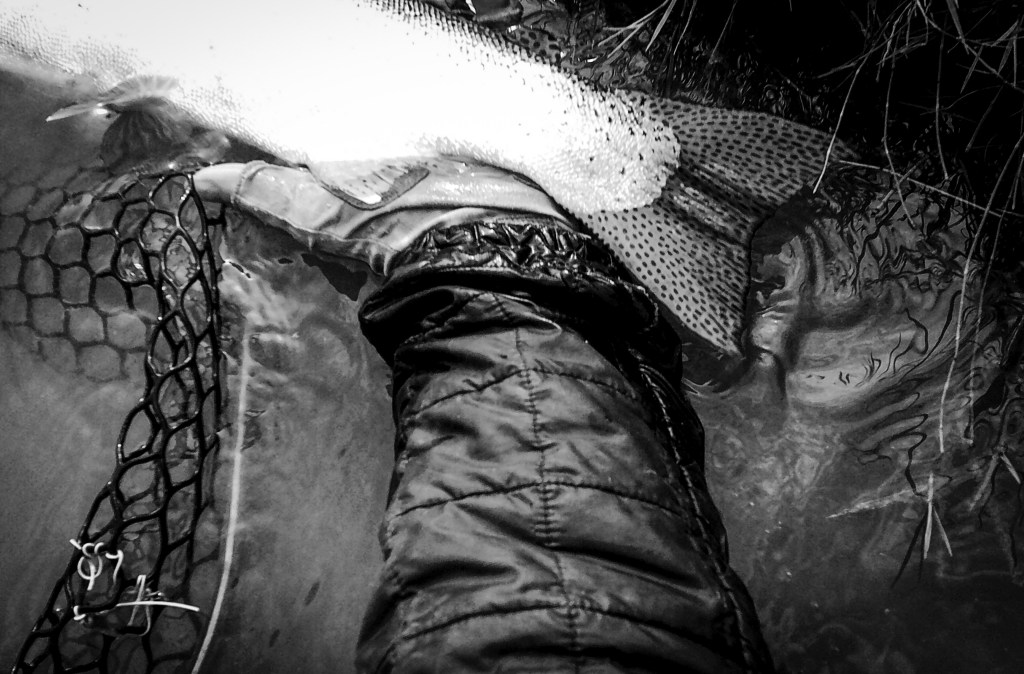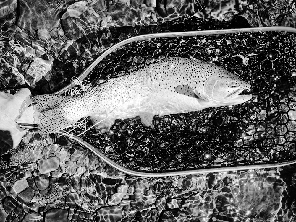My fly choice has to be convincing. If it rejects it, it will glide back to the deep. That might be it for the day. Gone! If it decides to eat, it is often a slow motion take so I’ll have to be equally slow with the hook set. I match “slow with slow”. A hook-up in an a large pool often means I’ll probably hear the tick, tick, tick of my backing knot as it passes through the rod guides.
