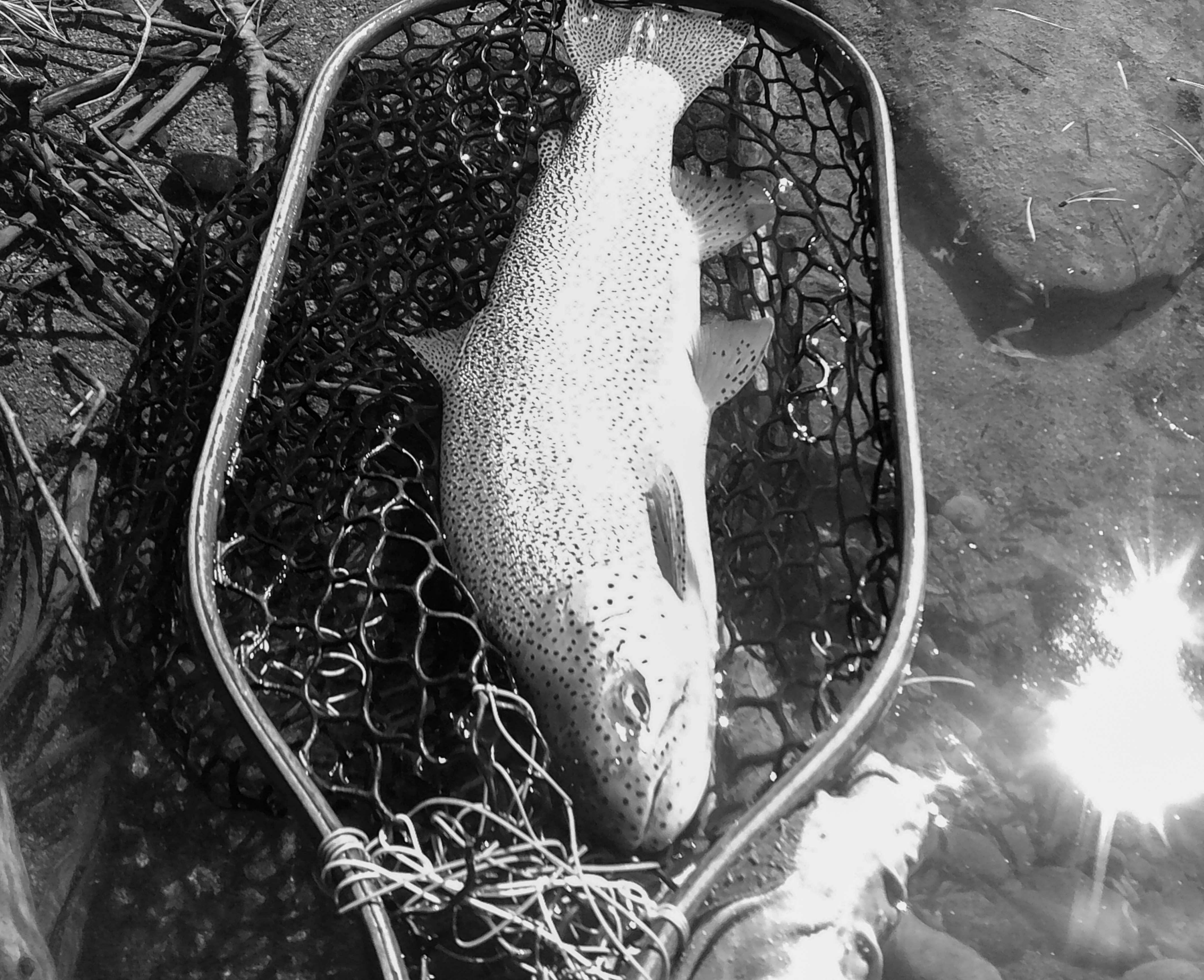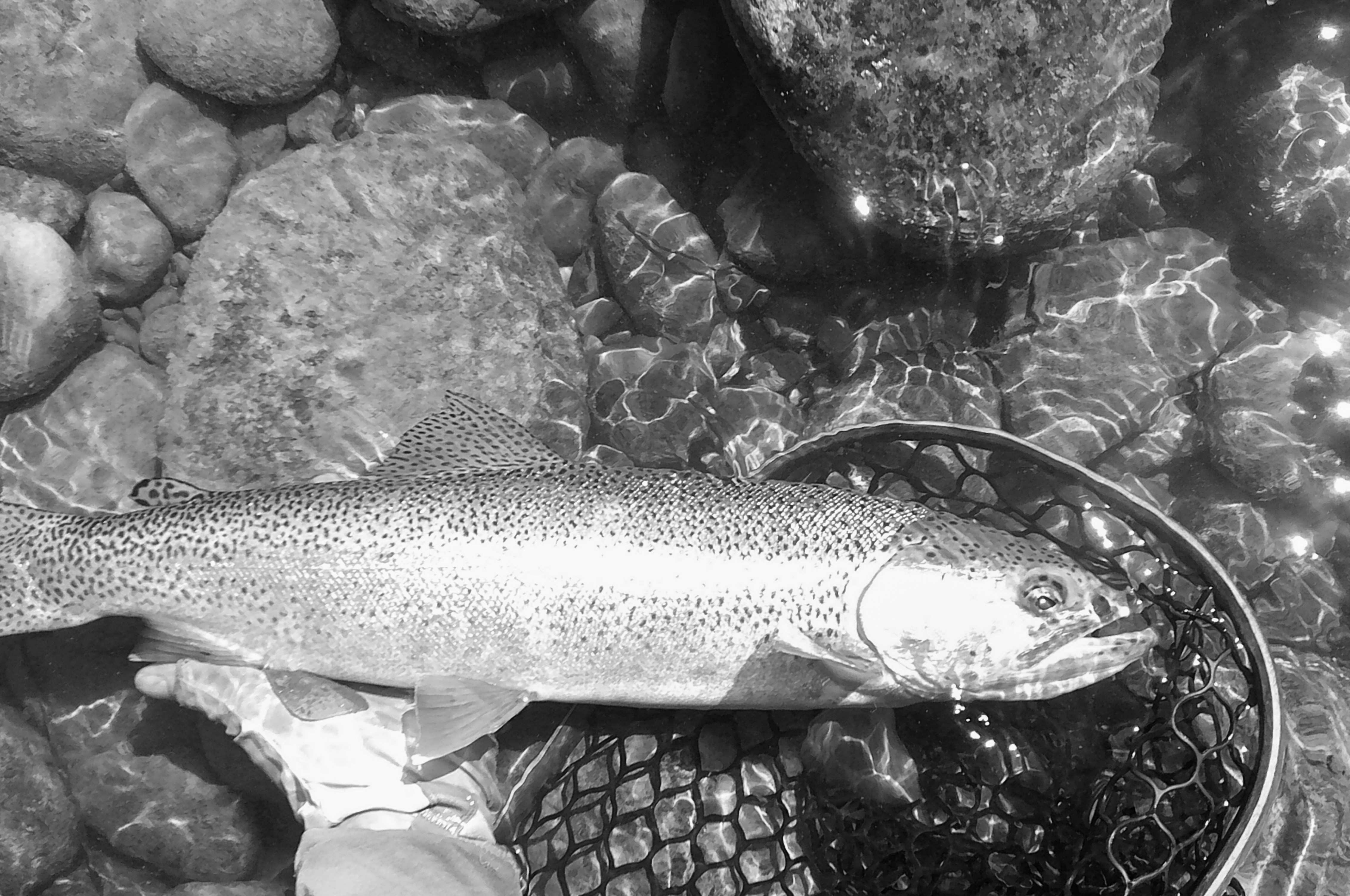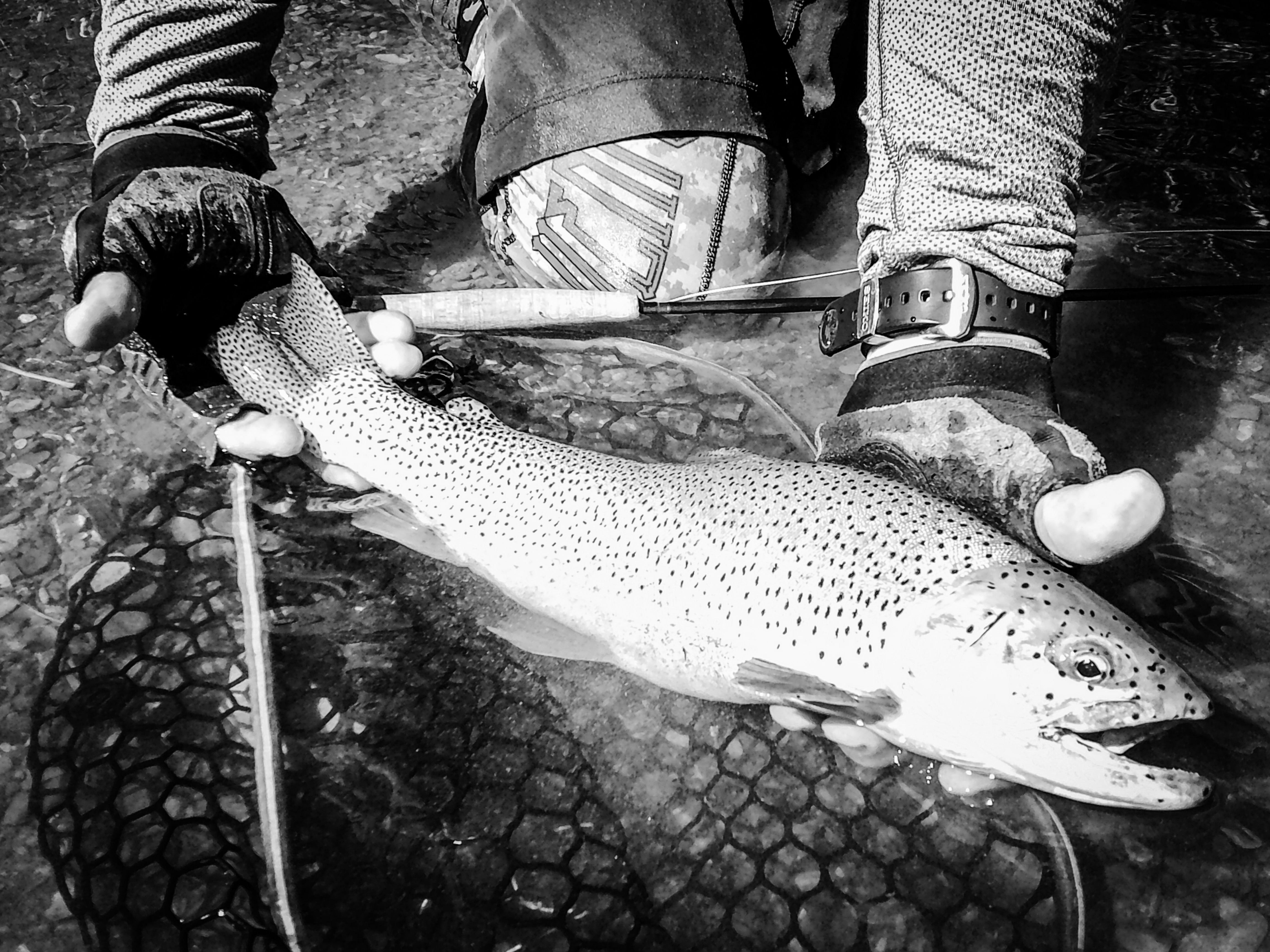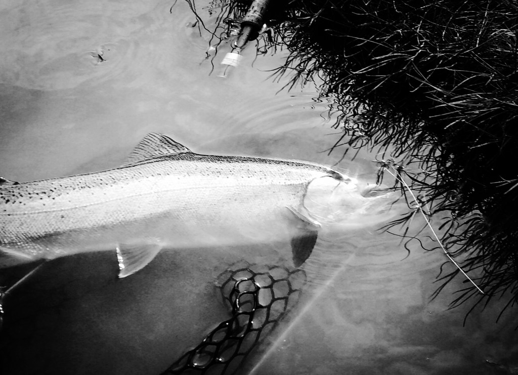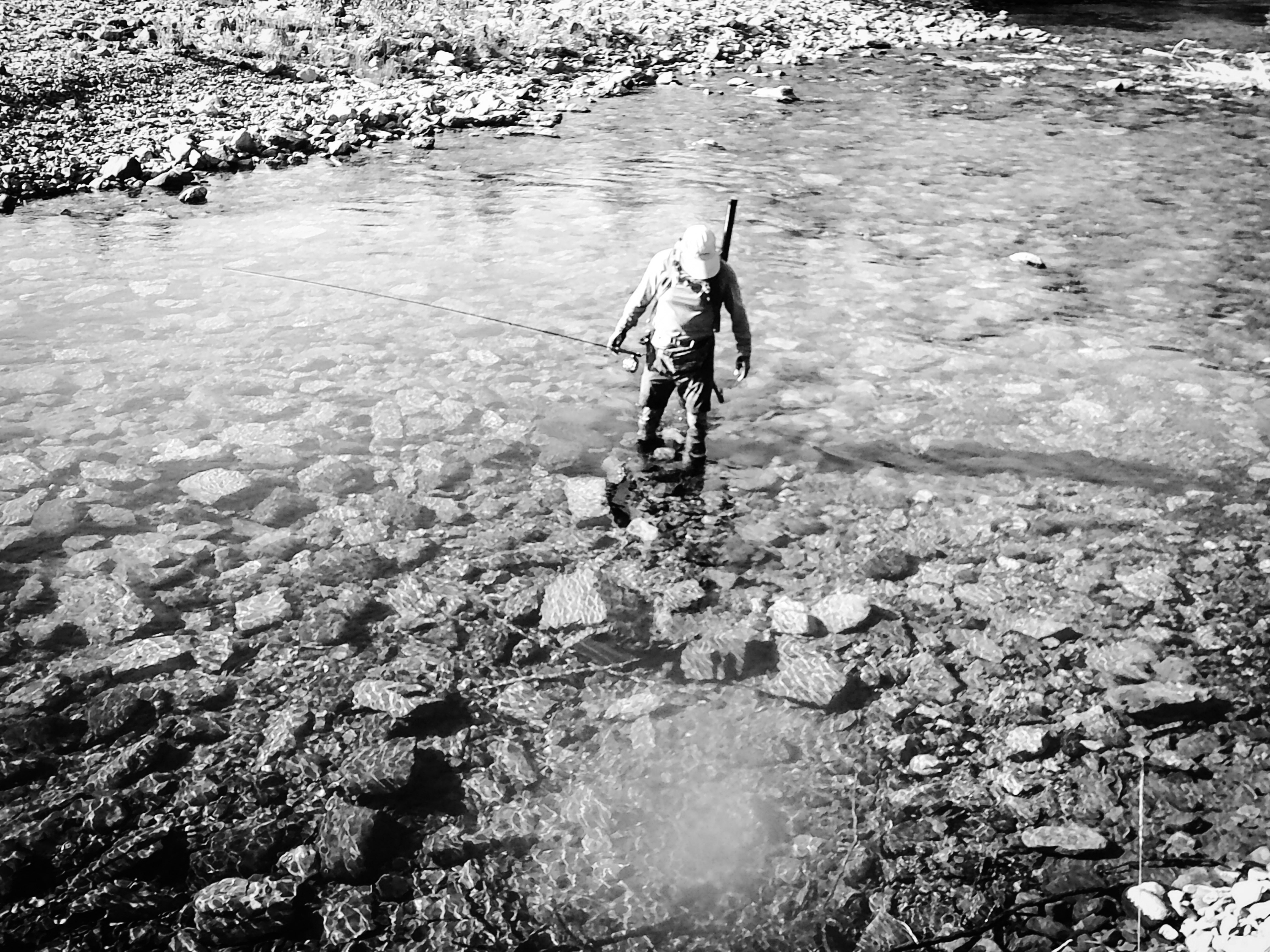 My fly choice has to be convincing. If it rejects it, it will glide back to the deep. That might be it for the day. Gone! If it decides to eat, it is often a slow motion take so I’ll have to be equally slow with the hook set. I match “slow with slow”. A hook-up in an a large pool often means I’ll probably hear the tick, tick, tick of my backing knot as it passes through the rod guides.