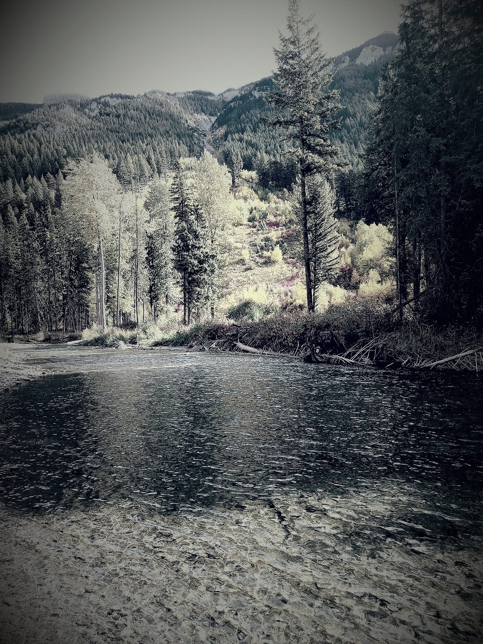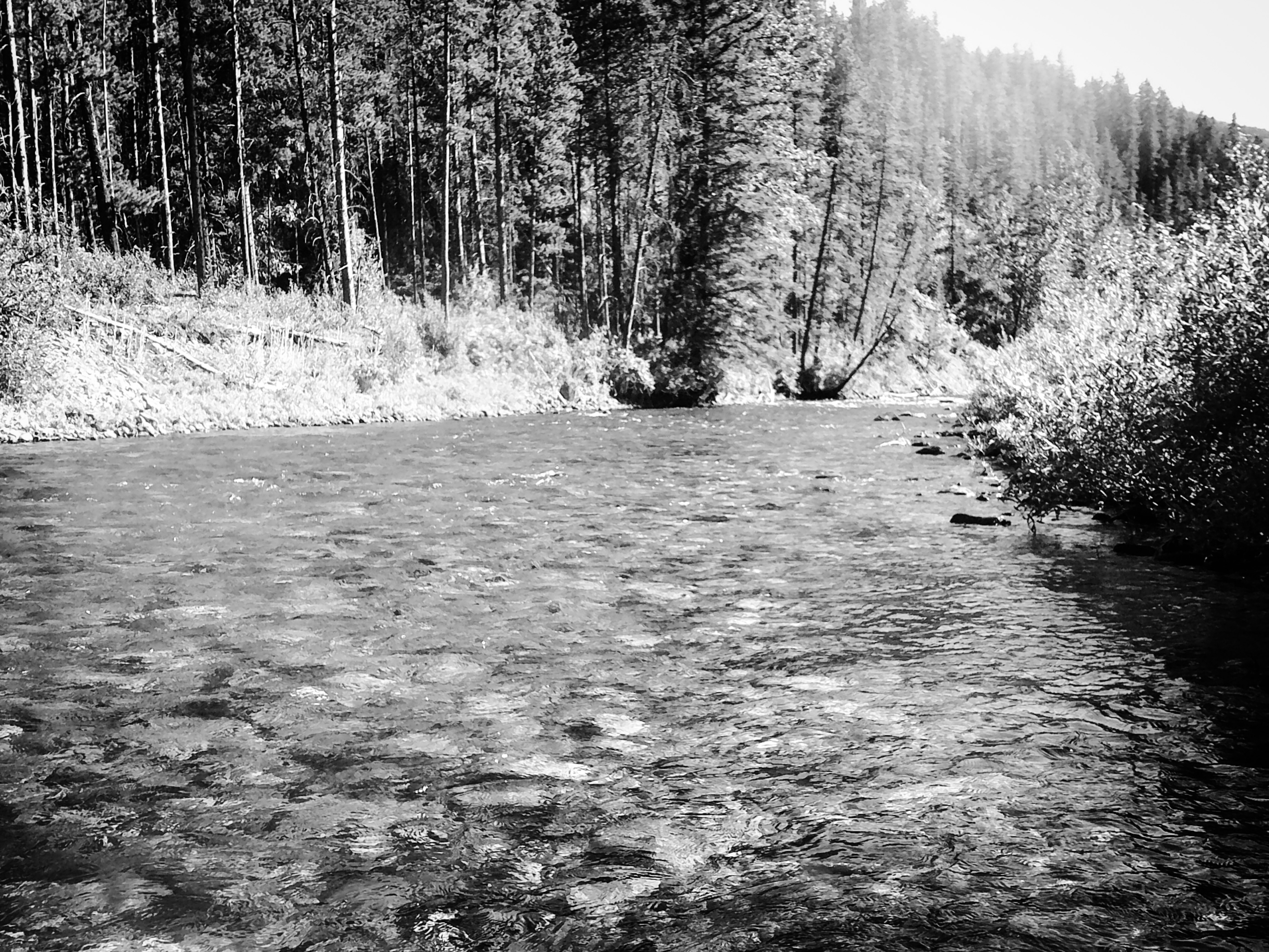 SEPTEMBER. SIGHT-FISHING. IT CAN BE CHALLENGING WHEN there is a smoke filled sky and some high clouds. When the ceiling above me is thick and casting a significant glare on the water’s surface. A glare that’s often blinding at river level. On one of my favorite rivers I reduce glare by climbing its high banks and cliffs. Up high I can see into the water and spot trout when they move into the shallows.