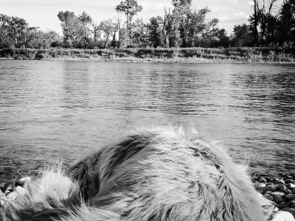 Sight-fishing is all about observation, concentration and using the light to your advantage which was hard to do while being constantly harassed and distracted by insects. I did spot a few Rainbow trout and fooled some on terrestrial patterns. After a few hours I had had enough and decided to leave. My dog approved of the sprint back to the car and the quick drive out of the coulee, and on to the highway. Wide open windows at 110km blasted any pesty hitchhikers out of the car. One hour later I removed my wet wading boots and socks at a Walmart parking lot.