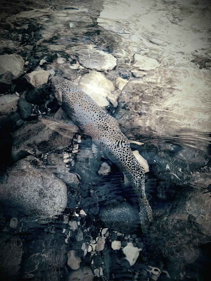 Up high you can observe a trout’s feeding behavior. You begin to realize that it has a route that it cycles through. A repetitive hunting path. They often travel along river’s edge then circle back downstream through the deep pool water, then re-enter the shallows and creep upstream along the edge/bank again. As long as there’s an occasional reward (food item) they’ll repeat the cycle. Sometimes they deviate slightly. They’ll travel higher up in the pool or start their cycle lower down closer to the tail of the pool. If they are not finding a lot of food they might cross over to the other side of the river/pool and feed in a similar fashion along that edge. They generally stick to one pool. It is their home; their neighborhood. And the biggest fish seem to pick the river’s largest pools. A river’s nuances…