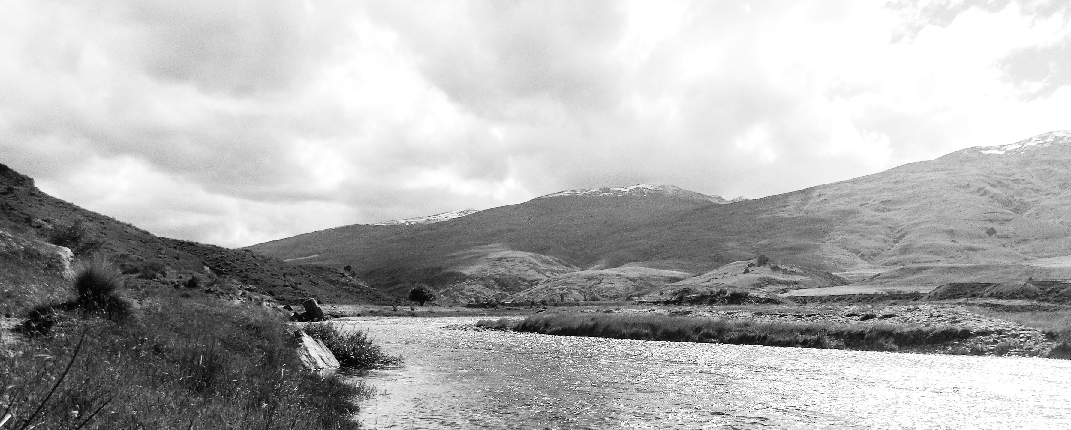 On my second week of the NZ trip I decided to venture south to the high plateau knowing that my chances due to conditions (continued rain) of catching a good one on a dry fly would be slim to none. And that proved true. I made the long drive crossing one raging river after another on the way down. The large glacier fed lakes I circumvented were white-capped, ocean like looking in temperament, and threatening to flood the roads and tourist towns on their edge. The wind blew, the clouds were low, and I drove through storm after storm. I got a tiny cabin rental at a holiday park for the night and then early the next morning I tackled the muddy, slippery switchback road up to the plateau. What normally takes me thirty minutes took one hour. But I got there. I brought along extra food, water, warm cloths, and my sleeping bag in case I got stuck and had to wait for things to dry out. My first day there it rained. It was cold for summertime. Snow collected on the hills that fringed the river valley. Surprisingly, water clarity wasn’t too bad but it was much higher and faster than when I fished it in other years. Many pools I had fished in the past weren’t really pools due to the higher flow. I knew of one exceptionally big and long pool, with a back eddy, where I thought I might find some slow, flat water and possibly a rising or cycling fish if insects showed.