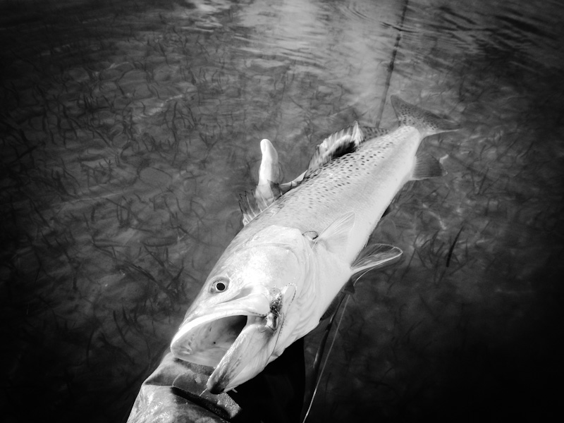 Periods of heavy rain were predicted for the next day and the day after. The flow on the river I had fished my first week, six hours north, was dropping and so I decided to make the drive back there late that afternoon. I was, however, satisfied with my return to the high plateau. I got back. I got back and in spite of all the weather adversity I had one good opportunity with one of the river’s large wild brown trout. One opportunity was enough.