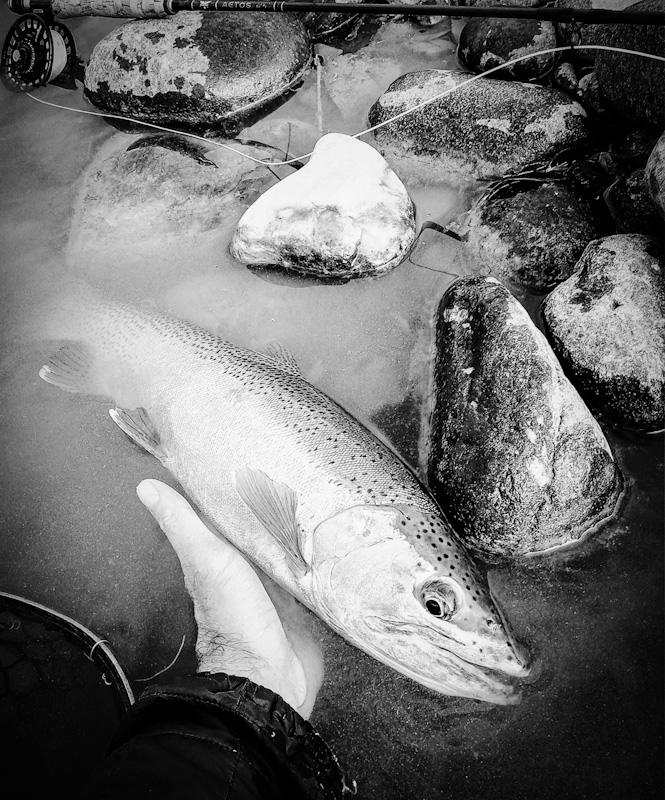The night is long at this time of year and daylight short, and dry fly opportunities brief. One or two hours in the afternoon, maybe slightly more, depending on the intensity of the hatch. My first day I experienced a weak hatch. The second day it drizzled a bit, was colder and the sky ominous looking. The hatch was strong. The river section I was on came alive, and I connected with size 18 and 20 parachute BWO dries. Rising trout on November 4th. It was a good day. So good I flipped my fly rod in the air.