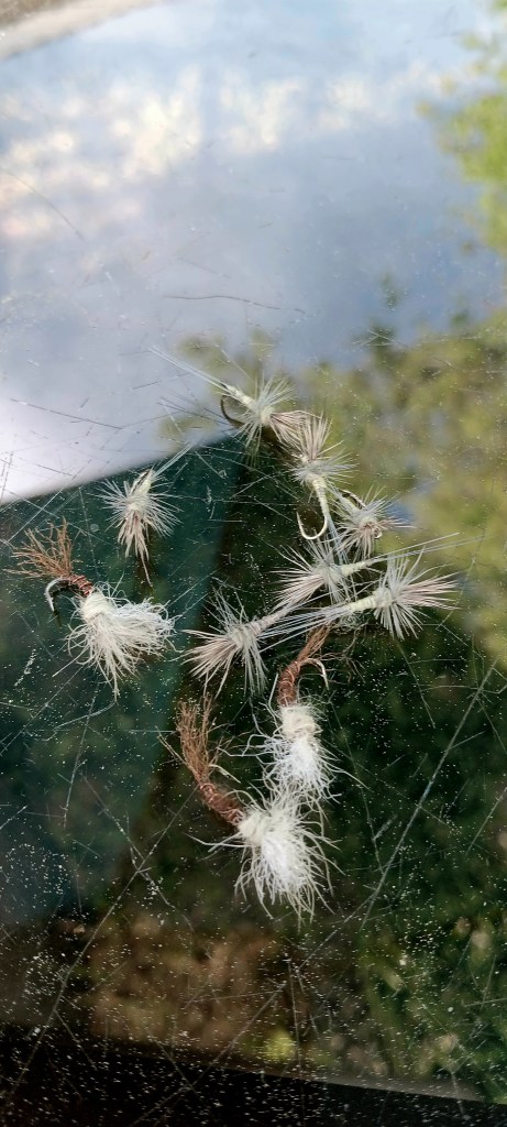 Road trip. Fishing, not Baseball. Last one for the trout season. It’s been sunny and blowing for weeks along the eastern slopes. The two conditions often go together in Autumn. The upcoming weather prediction was for 2 or 3 days of calm and overcast skies. A perfect set-up for a late season Blue Winged Olive (BWO) hatch. So I decided to take advantage of the incoming low front and drove due south in full sun and high wind, and woke up next morning under a heavy sky and best of all calm.