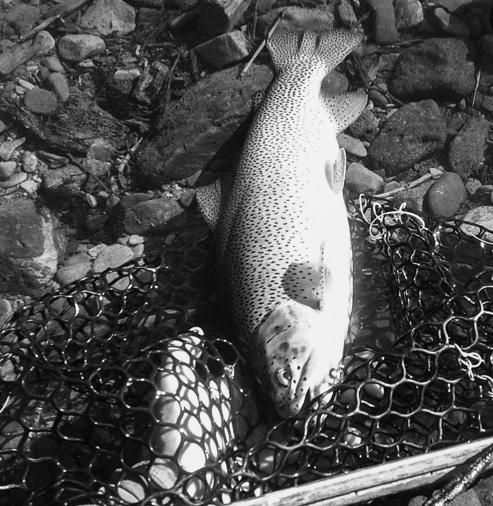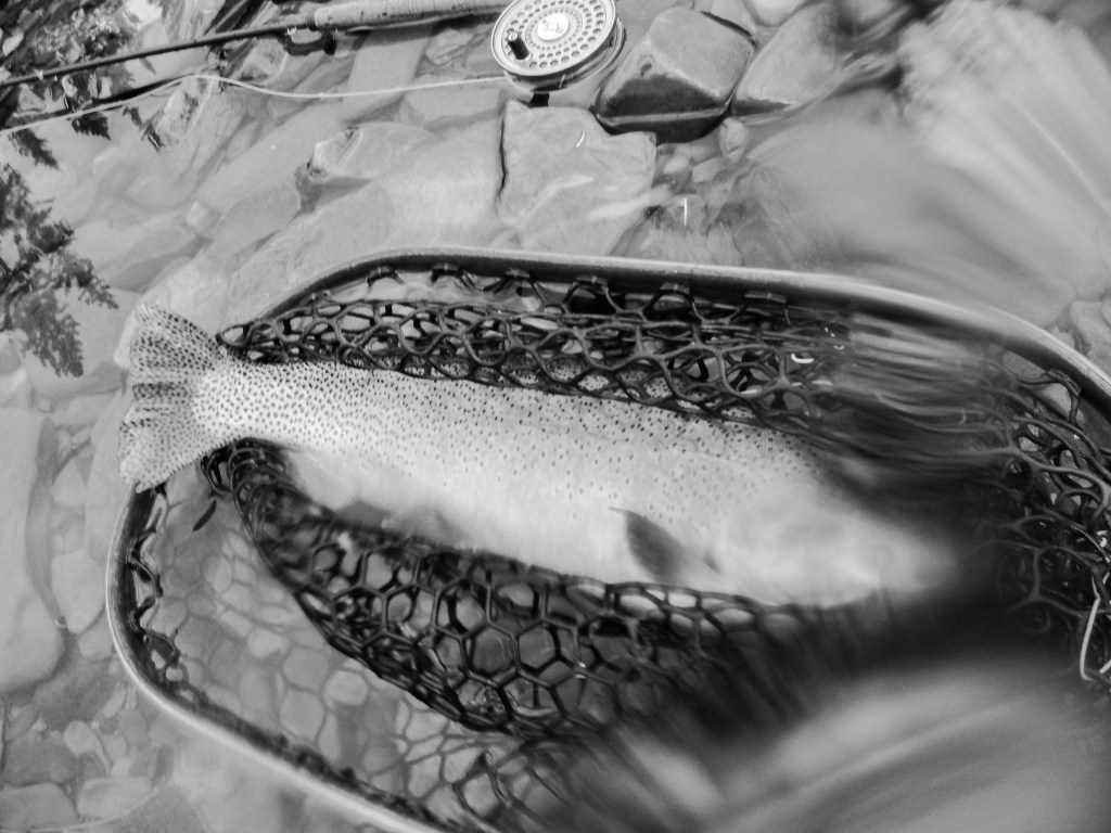 A few weeks ago there was cloud cover, rain, some hail and lightening. Then smoke filled skies followed the inclement weather. It produced low light conditions for two or three days. We ventured out, weathered the storms and the heavy smoke, searched and luckily found some good ones sipping. Low light and insect life triggered by the rain brought opportunity. Some nice brown trout…