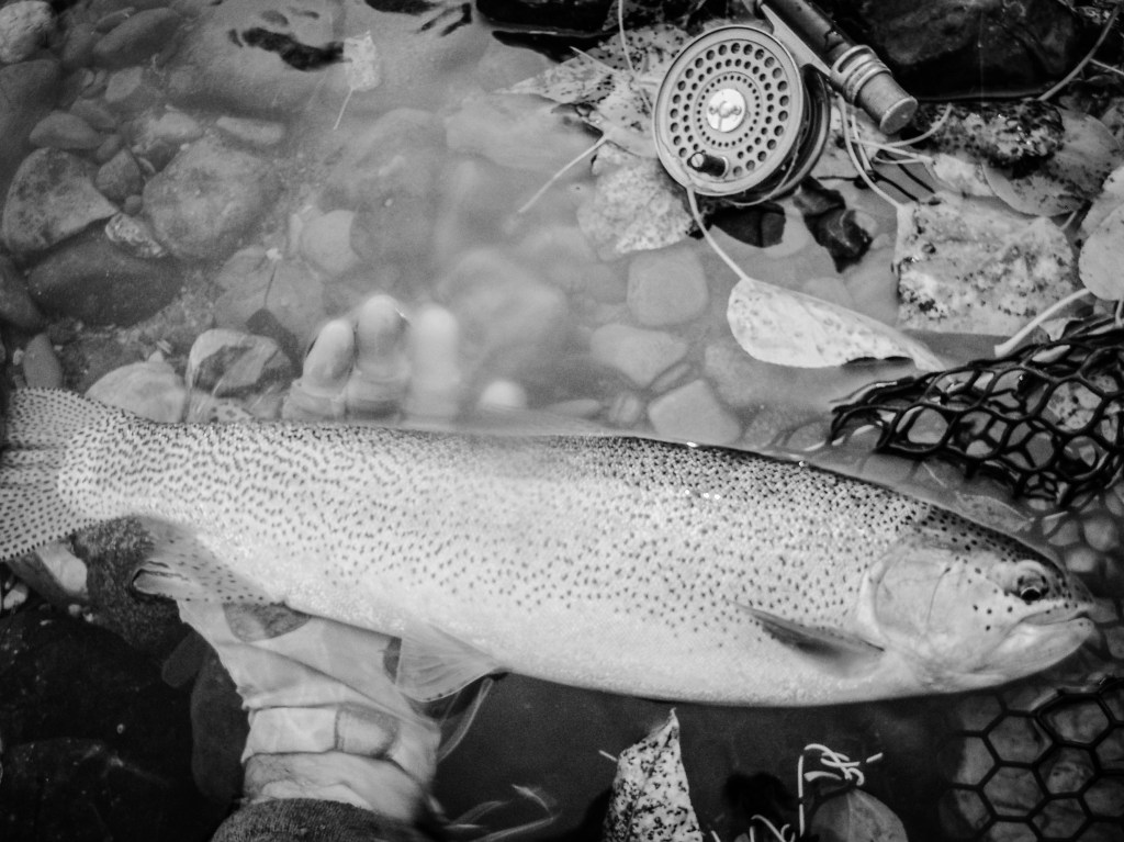 It is a given that in low water conditions that Cutthroat trout, and trout in general, are going to be in the deep pools on a river. Catching them there is always an achievement especially late in the season after they have been fished-over for three plus months. However, finding a good one in between pools in the shallowest of water is for me much more special. It’s the location. A few trout found in the scarcest of water the past few weeks…