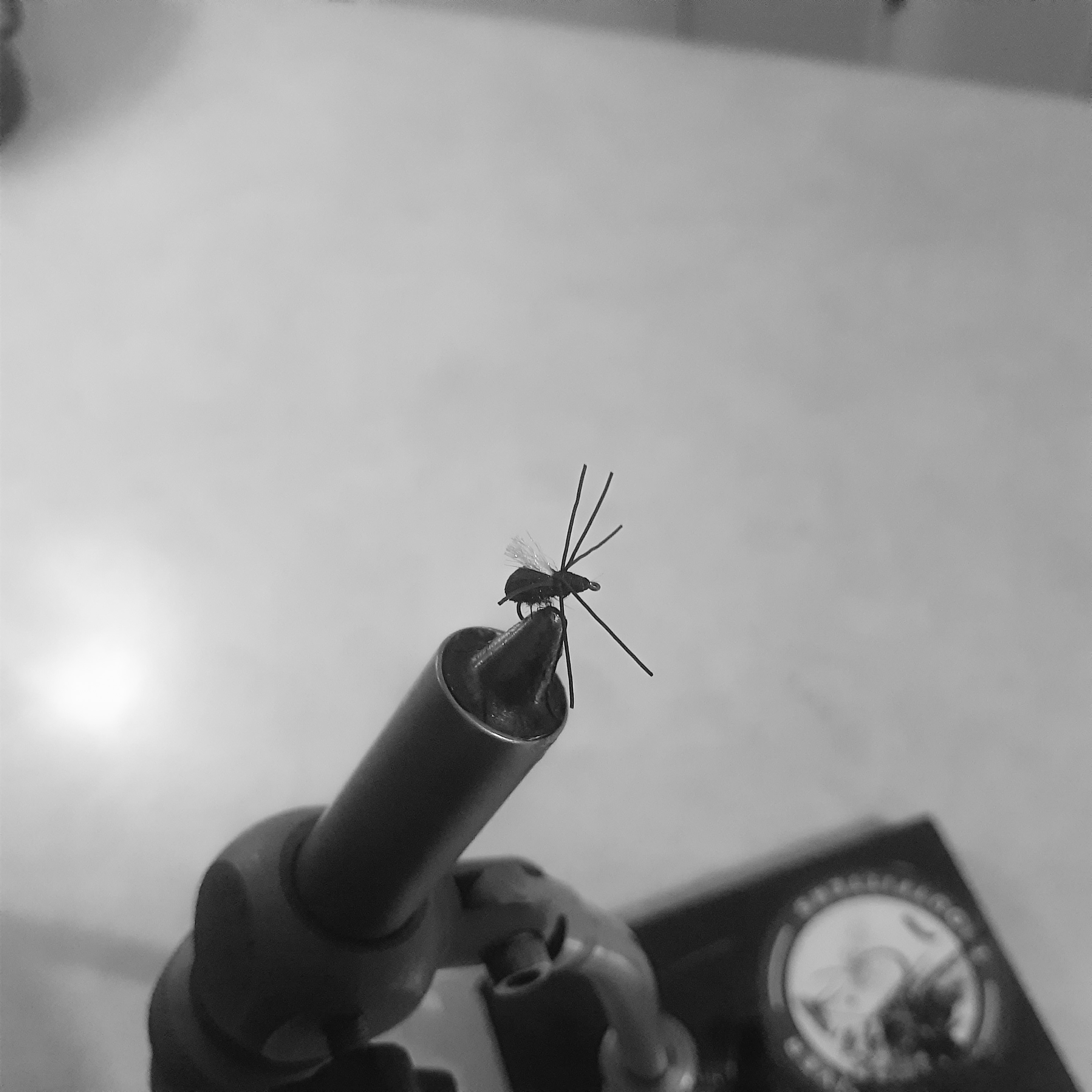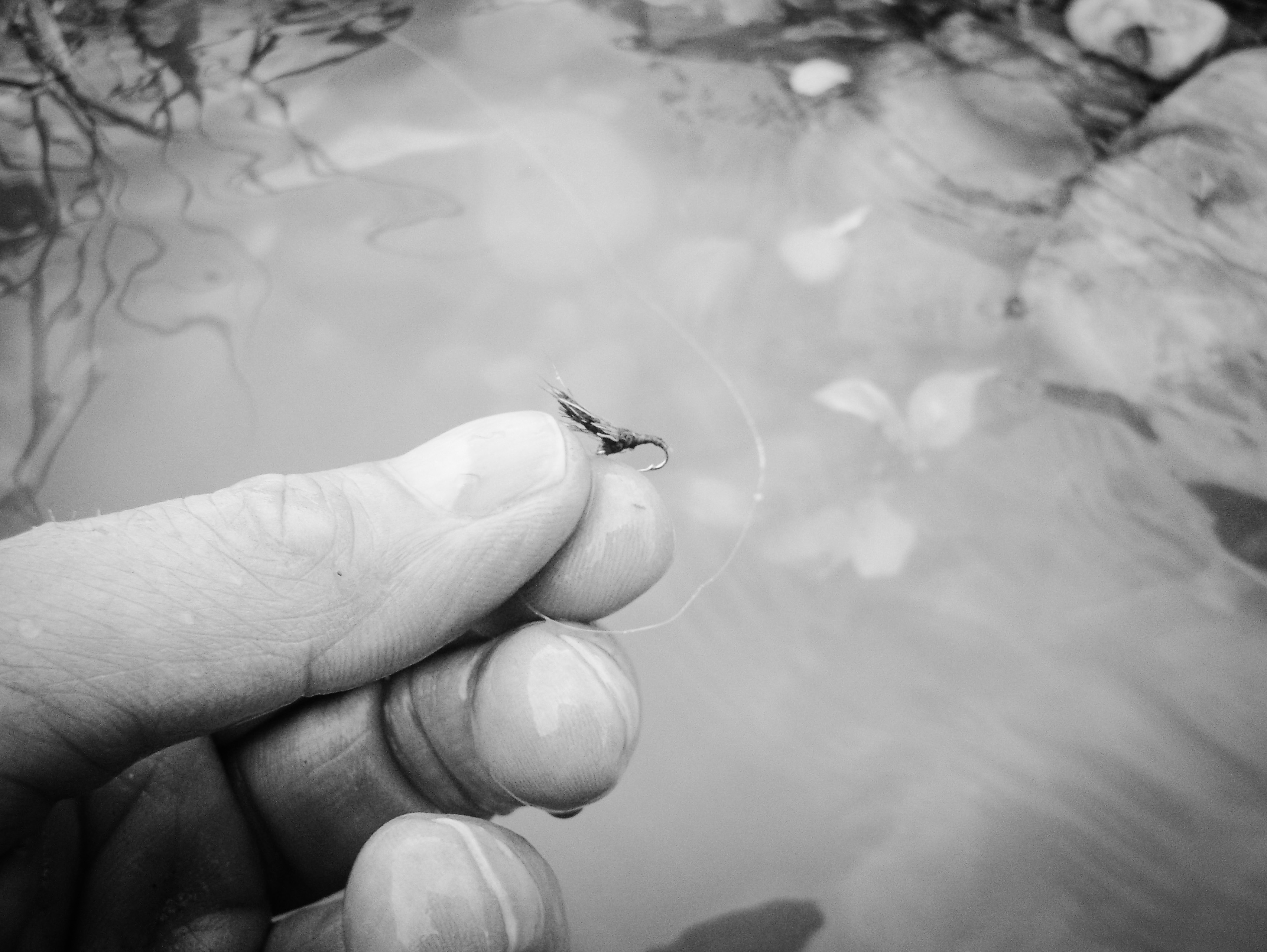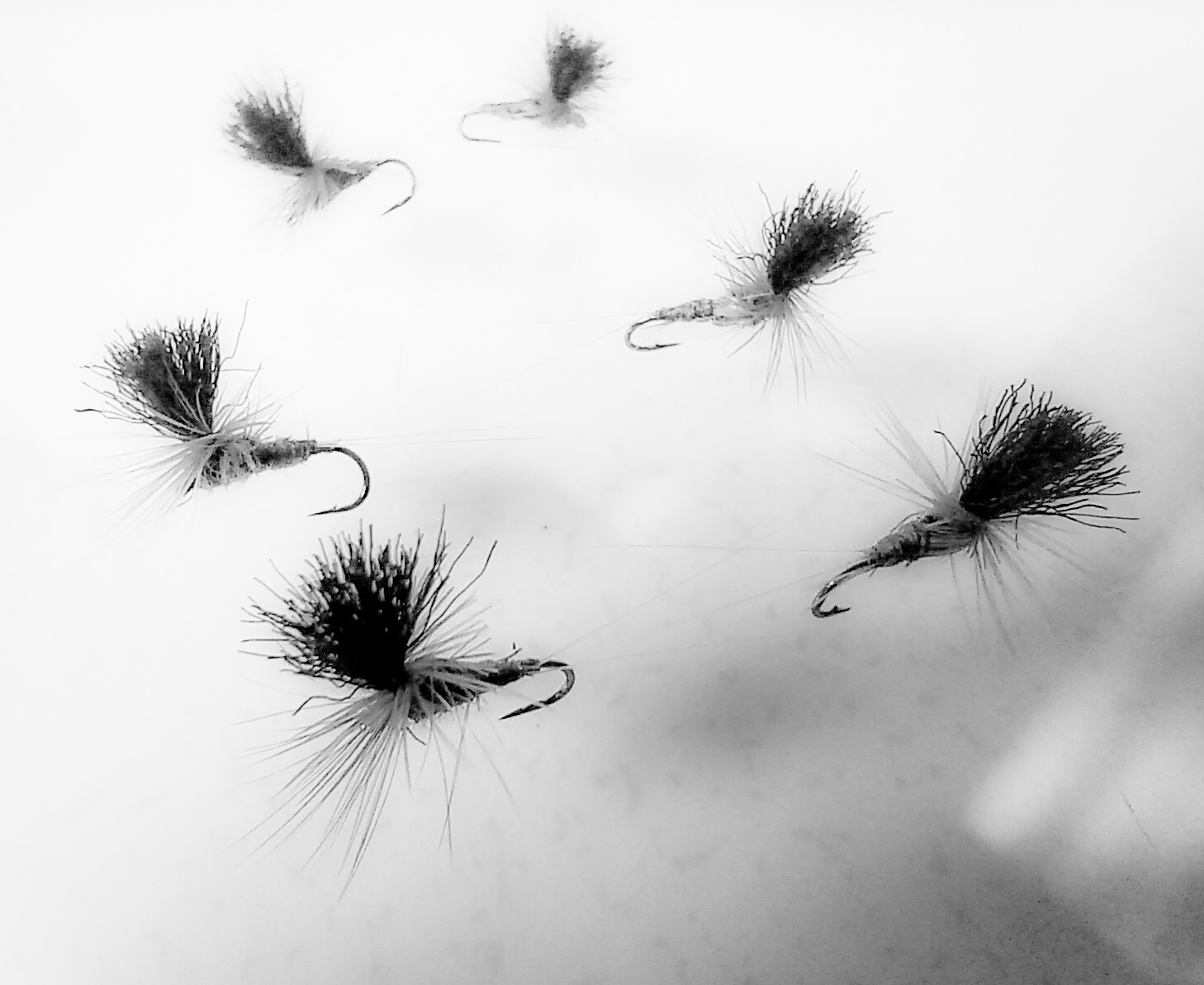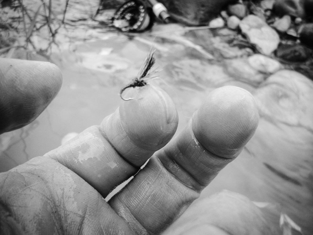 The only fly that showed up in the aforementioned challenging conditions was one with a black post or a black wing. And I found that the flies that I had tied with a very exaggerated, robust tuft of black obviously showed best in the silvery-grey, ruffled water.