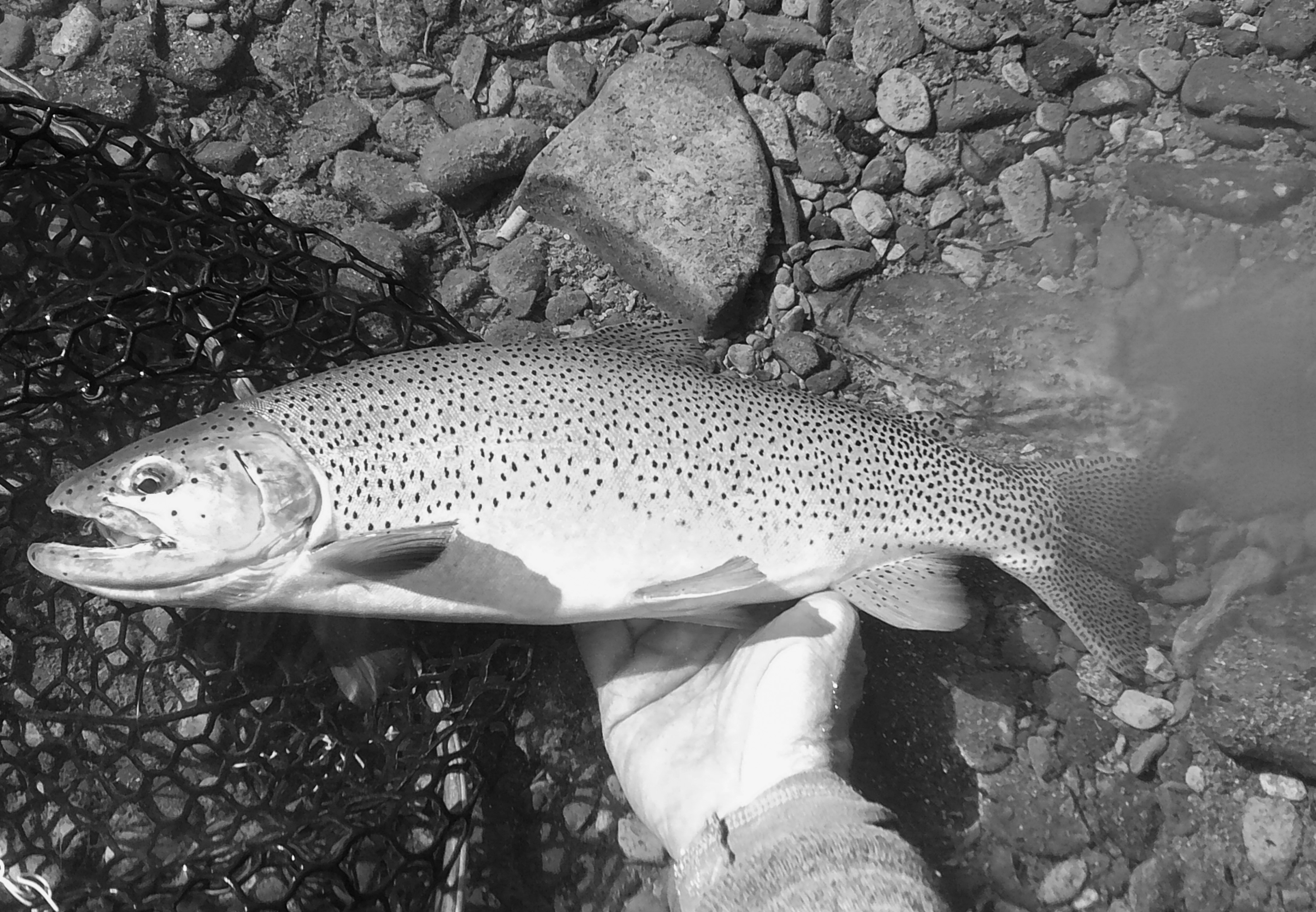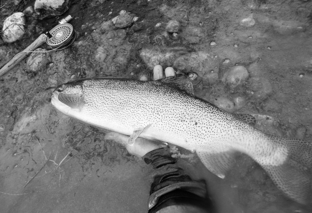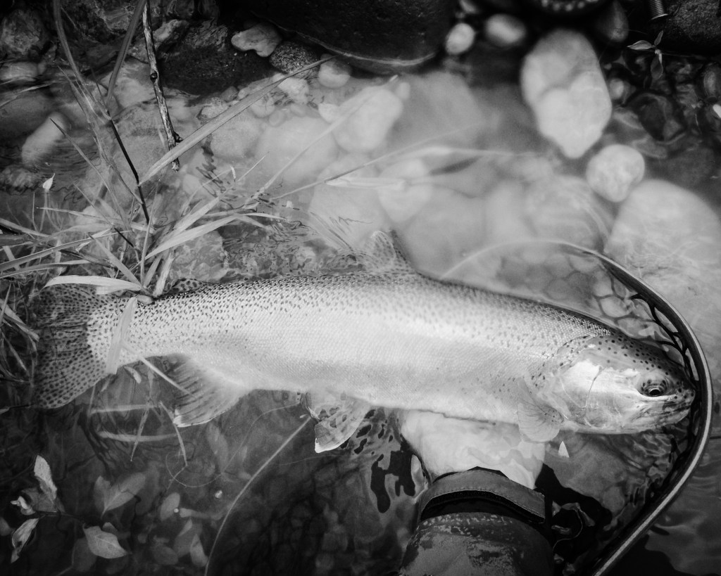 I have been hiking a few very low, clear Cutthroat rivers the past couple of weeks; walking the long distances between pools where there is very little holding water and therefore trout. I always pause in these sections when I see see a small area of slightly darker water, or what seems to be a slight depression in the river bed. A spot that is just a little deeper than the rest. Often it’s just two or three feet of slow moving water. Sometimes less.