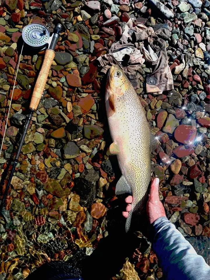 Crisp in the mornings. Sun is arcing low. Noticeable long shadows mid-afternoon. Still windy. Still mainly hanging out in the mountains trying to escape the wind. Still fishing dry flies. Did spend one half day on a tailwater river out on the Plains sight-fishing a slightly sheltered back bay.
