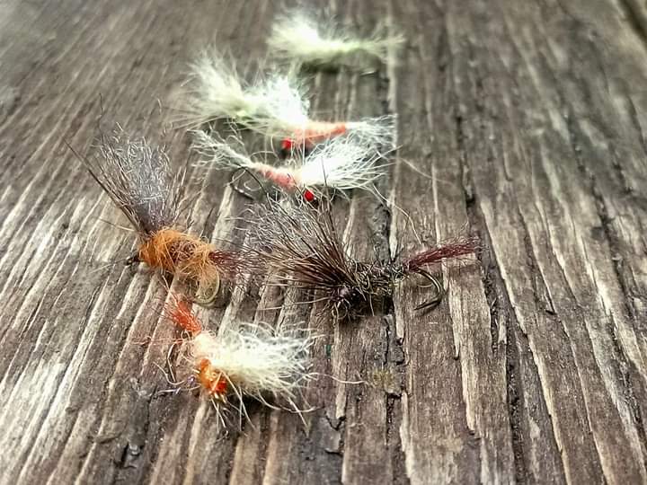 There were mayflies around: olives and a few pmd’s. I prospected the slow shallows with a beetle pattern early in the day. Then I fished a size 18 Mole fly when I started seeing some surface disturbances. It’s a simple shuttlecock style pattern by Charlie Craven, a professional fly tyer. He ties his with a CDC wing. Due to the heavy rain I tied mine with polypropylene and some with deer hair, or a combination of both.