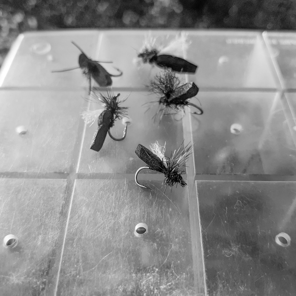 Cooler air and water lately and improved flows with some rain. Mornings chilly. Afternoons really perfect. The wind has been in check. Fewer people around. I’ve been on some creeks and a wider river. A great time to hunt for rising trout in the slower sections. Some found. My success has been with small stuff: cinnamon ants, a hacklestacker pmd pattern, some emergers and most importantly a lucky hat…