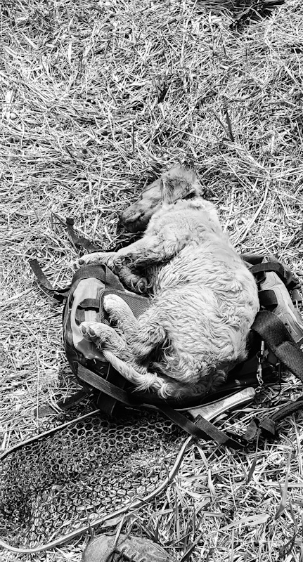 I camped with a puppy. We got up at dawn and called it a day at sunset. We were out all day. All four seasons were experienced on the road trip: from Summertime sunshine and warmth; to heavy Spring rains; many Fall frosty mornings and heavy cloud cover; and even a bout of Winter sleet and snow.