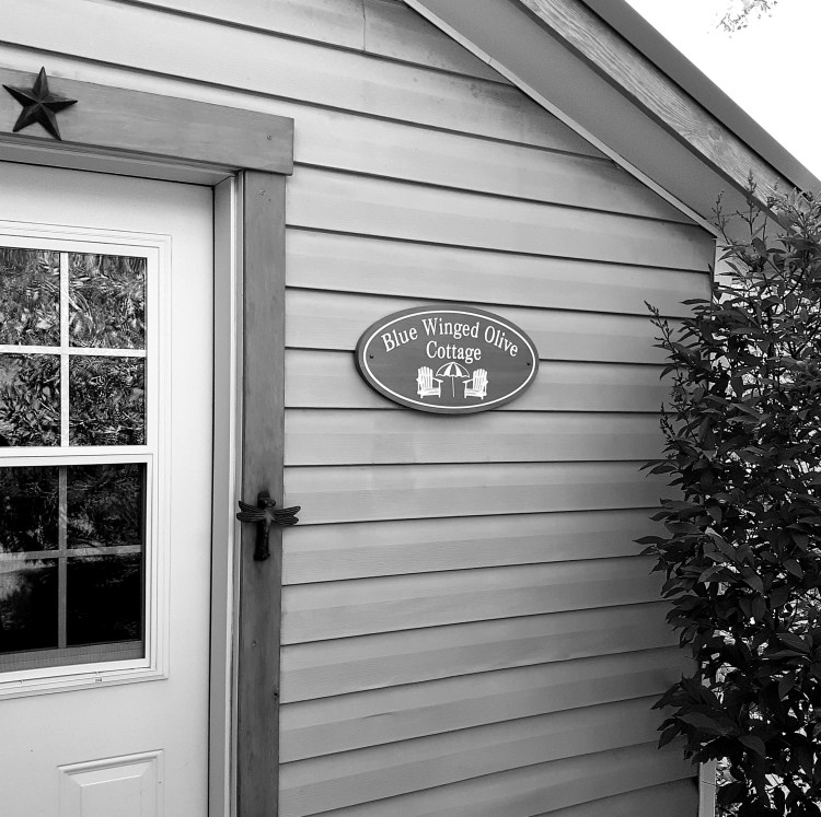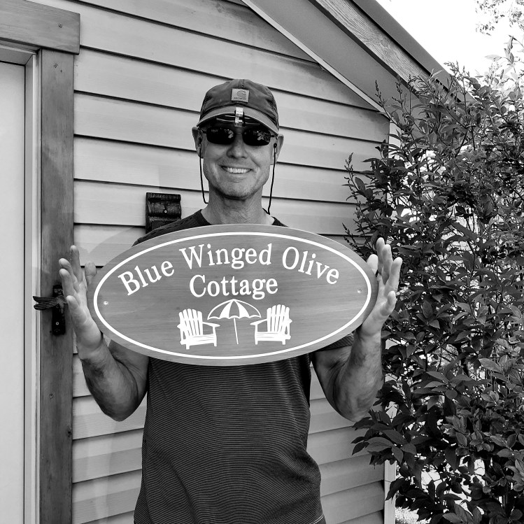 I PURCHASED a neglected old Miners home in SW Alberta 17 years ago. I’ve been working on it since. It’s tiny and really just a cottage. The best thing about it is that it is in the the heart of Trout Country: right near the Crowsnest river and many other spectacular flows. You would have a hard time finding a better fly fishing location anywhere in North America. Winters can be brutal (that’s Canada) but most summers are picture perfect on the eastern slopes of the Rocky Mountains. The rivers are clear, insects often hatch and trout rise, and there is a great fly shop (Crowsnest Angler) just down the street. For years I’ve wanted to name my home and have a sign made. Time flies! Seventeen years later here it is. The cottage is small, it’s a faded blue color and has a lot of green foliage around it in the summertime. I named it after a hatch on my local river…the “Blue Winged Olive Cottage”.