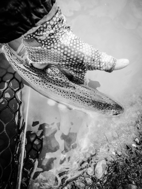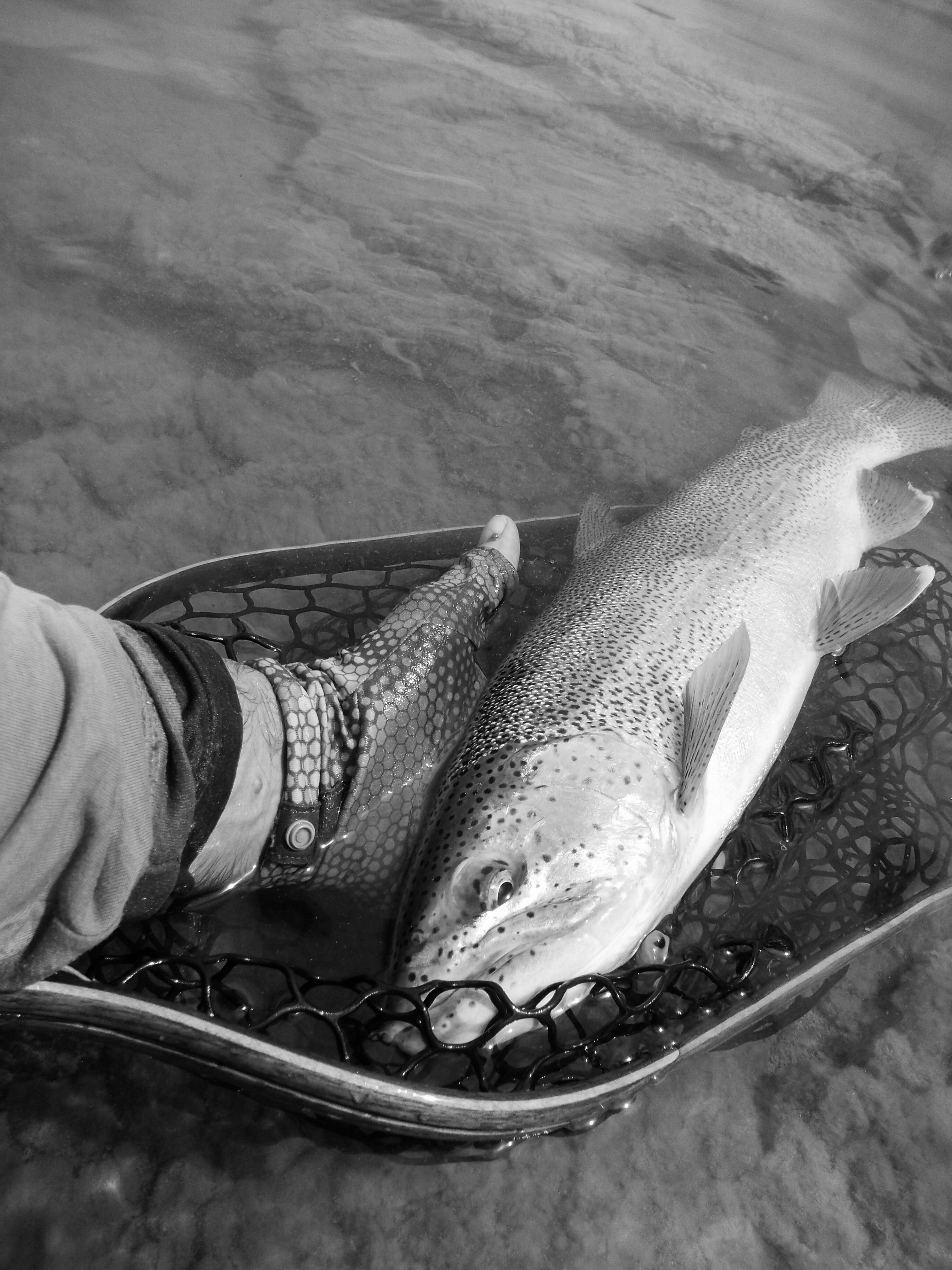 I was on the Crowsnest river this past weekend. Sunday was a rare nice day and warm. It felt like Spring! Some Midges were out in the afternoon, however, no fish were up on the section I was on. I even saw a couple of Blue Winged Olives at about 4pm. Just a few but promising. With no rises I started focusing on the river bottom instead of the surface. It’s a completely different type of looking. Through the river glare I eventually spotted a few dark shadows creeping along the bottom mid-pool. They would travel upstream six feet or so then drop back a bit, and then repeating the cycle. They were active. They were feeding. I managed one on a size 18 PT nymph with a cassette tape wing case and a small black beadhead. A dull fly; no shine to it. I landed a classic Crowsnest river rainbow. No hook marks. It was nice to be out sitting riverside in the sun. Nice to sight-fishing again. A new season.