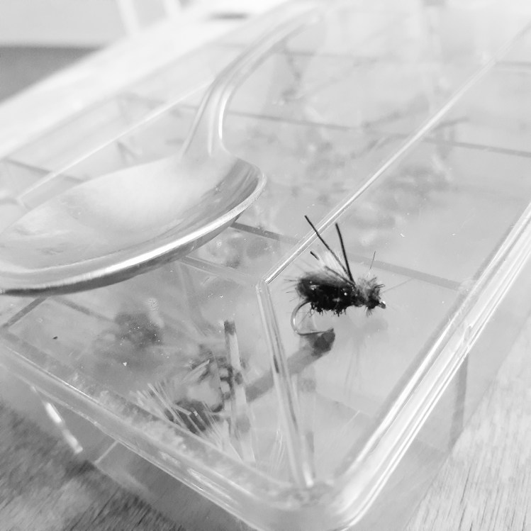 With the cloudy, drizzly and calm weather predicted for the weekend I drove to the Missouri (M0) river anticipating a hatch of BWO’s. And presto, just like that, the little May Fly appeared. In spite of their teeming numbers a lot of the flat water sections I frequent year after year were void of rising trout. It was hard to believe the fish weren’t sipping on the tiny flies collecting in the more gentle/quiet areas of the river. They should have been on them like kids on candy!