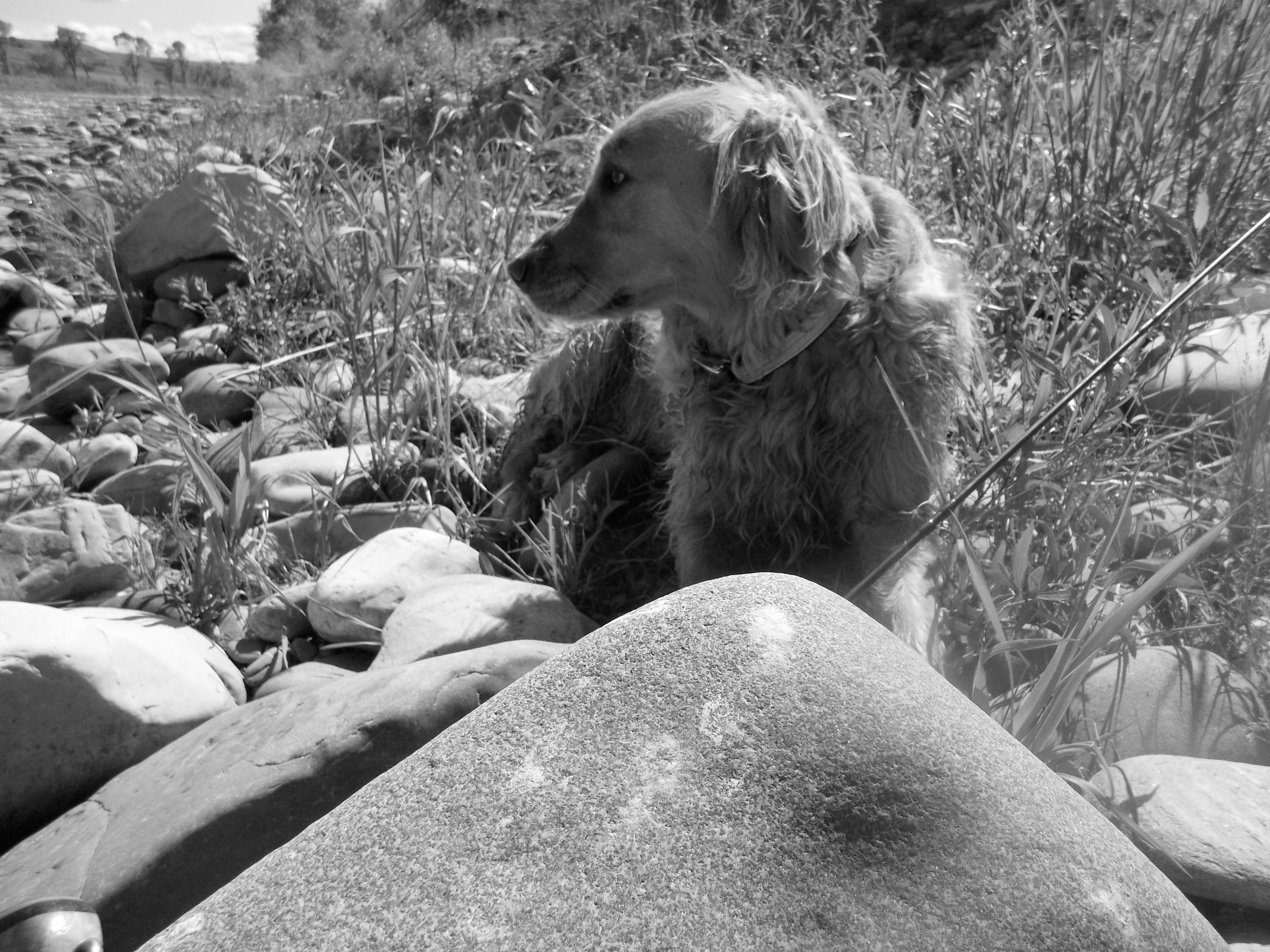 I lucked upon a fellow and his friend fishing a soft spot on the river. He was kind enough to give me a yellow stimulator (golden stone impression) from his fly box. Shortly after I hooked a fine brown trout that took me way downstream. I chased, once again rock hopping a long way.