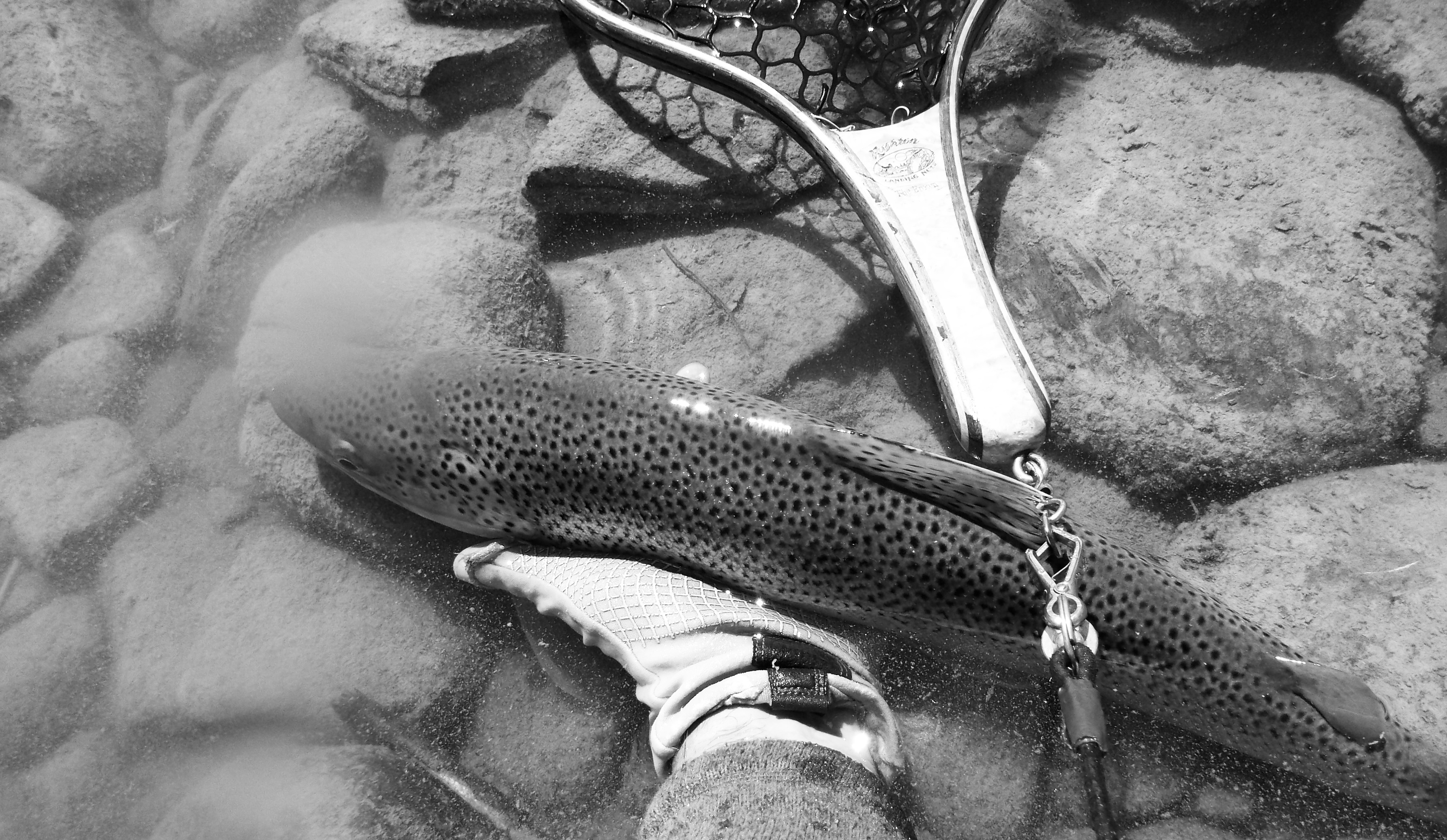 Here at home, 2000 miles north of the Laguna, my STORY is that it has been hot. Brutally hot. It was 38c or 100f the other day when I left a local river at 4 pm. I went to two different rivers that day both bottom release flows from reservoirs and therefore fairly cold. I fished in shorts, drank close to 2.5 liters of water, waded a lot to stay cool and found some fish rising. Here are a few nice trout taken in full sun on a size 16 Pale Morning Dun dry fly, CDC wing; and another on a Klinkhammer style tie with trailing shuck (see photo).